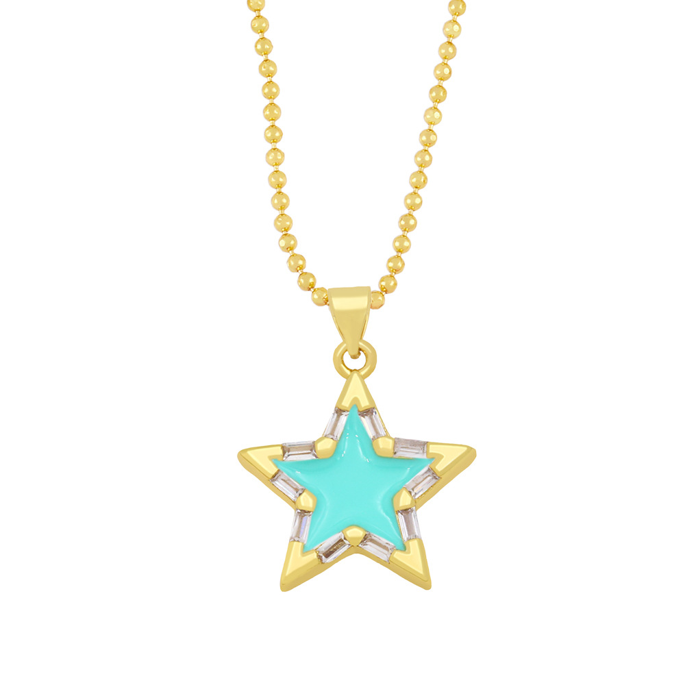 Clearance European and American spring five-pointed star necklace pendant color oil drop zircon necklace clavicle chain female nka003