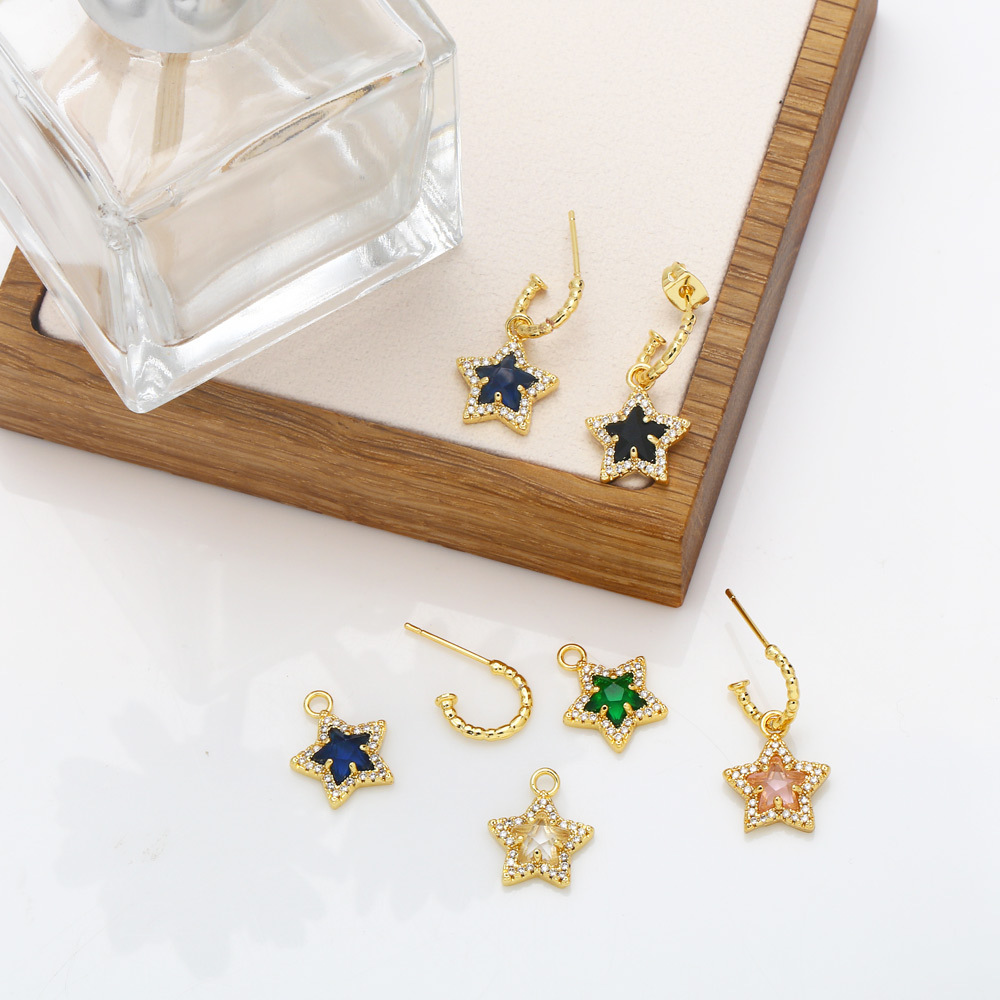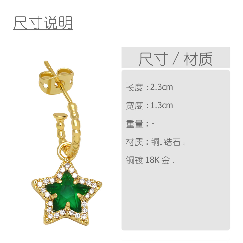 Clearance European and American star earrings retro diamond zircon five-pointed star earrings C-shaped earrings earrings erz99