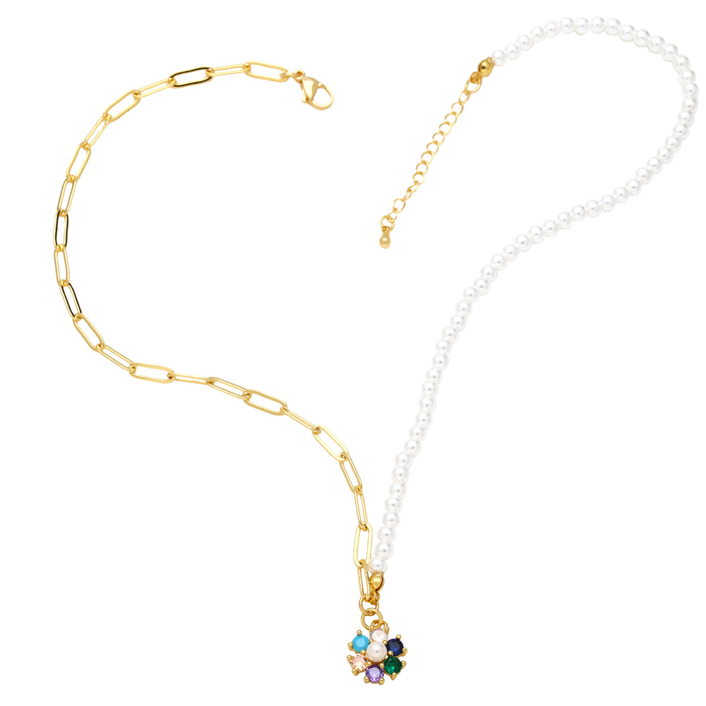 Clearance European and American street sweet cool style splicing pearl flower necklace female temperament necklace clavicle chain nkb619