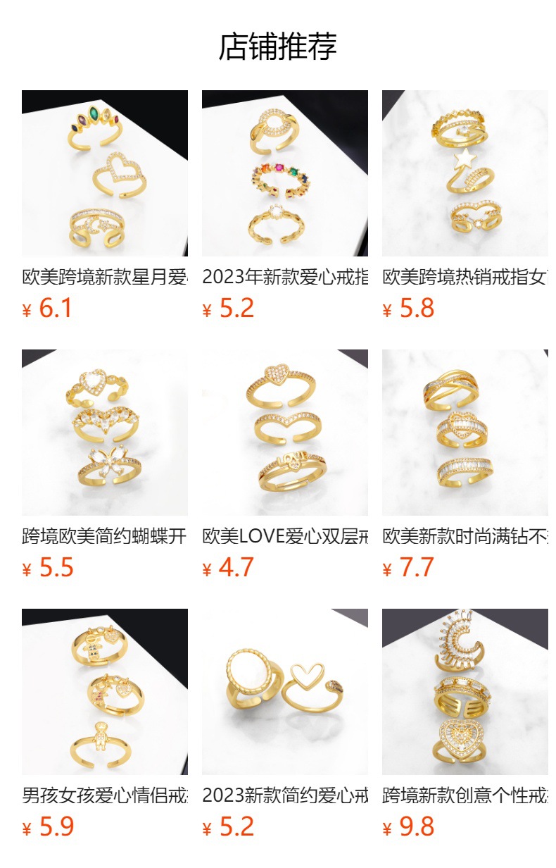 Clearance European and American style geometric ring female niche light luxury high-end love opening adjustable ring rik33