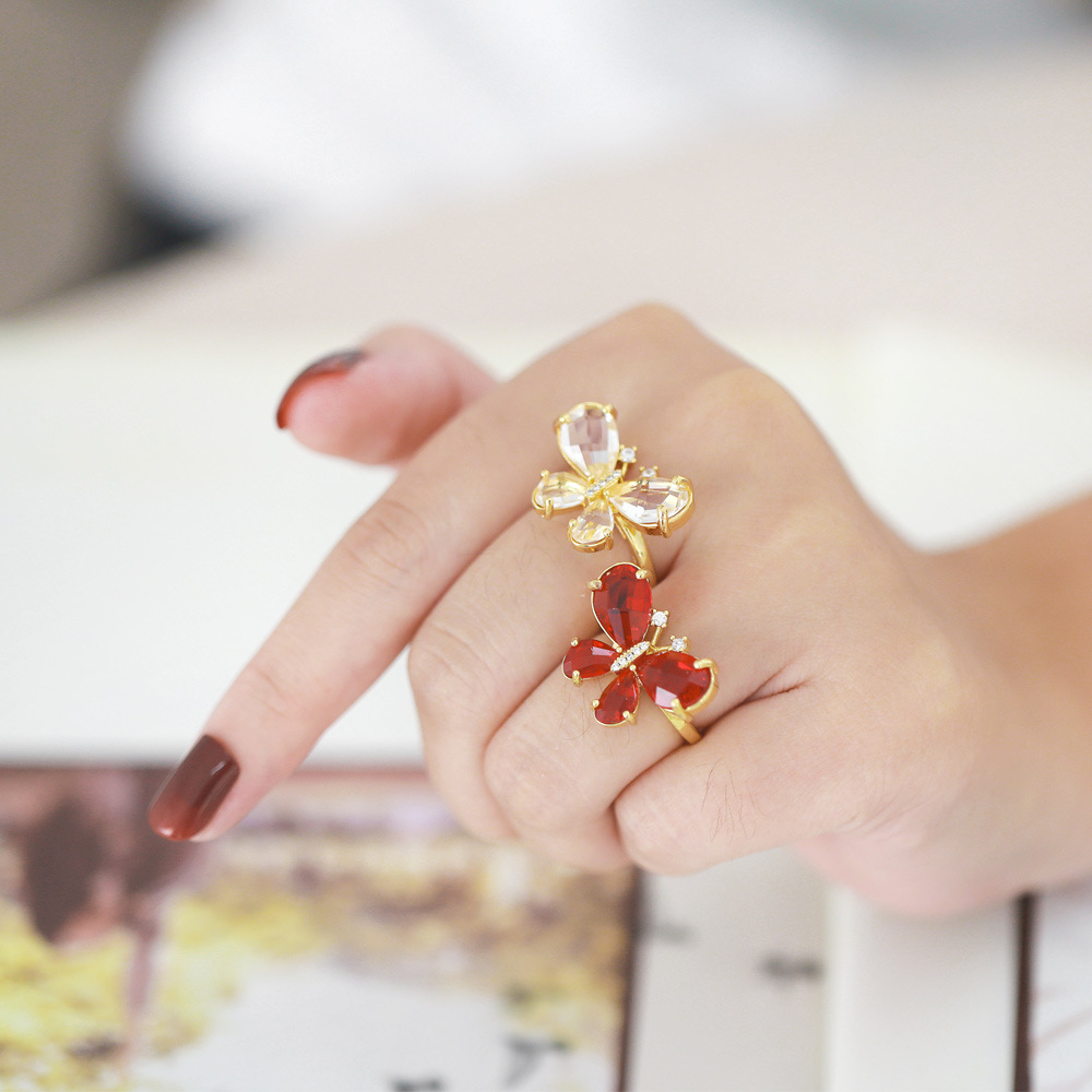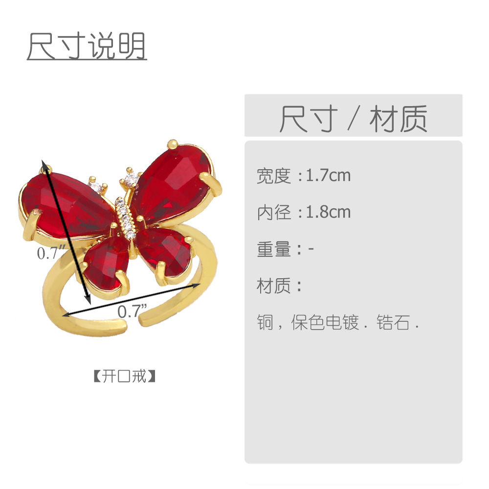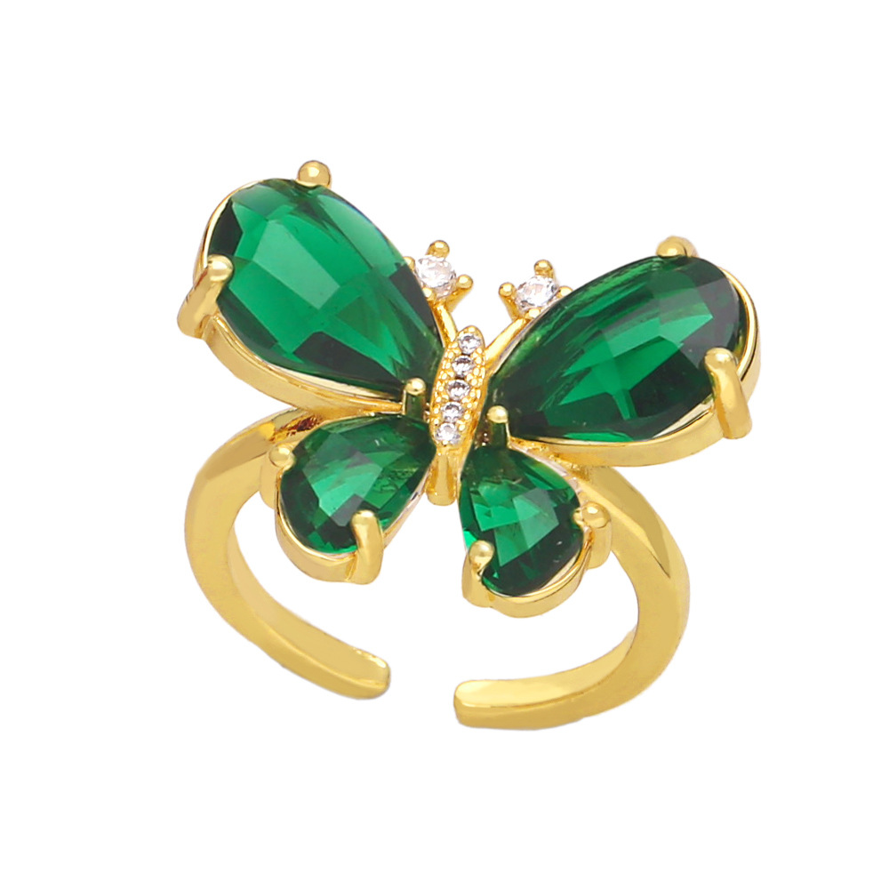 Clearance European and American style high-end butterfly ring female simple light luxury colored zircon open ring rir48