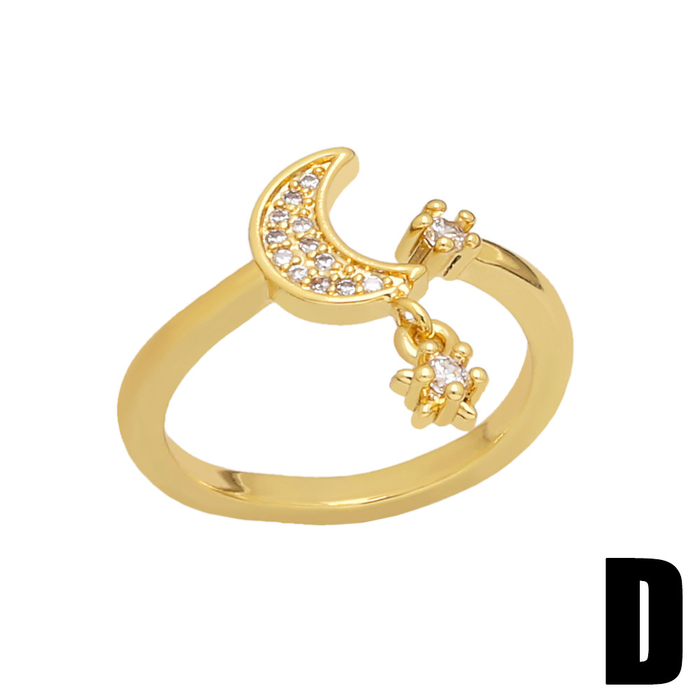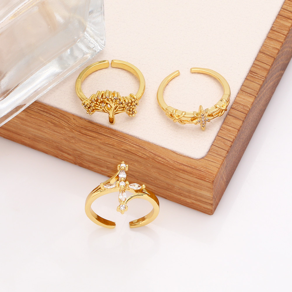 Clearance European and American style niche zircon ring female net red cross star moon index finger ring riq27