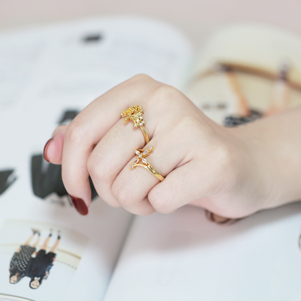 Small crown luxury French hot-selling water drop special flower floral ring temperament princess index finger ring