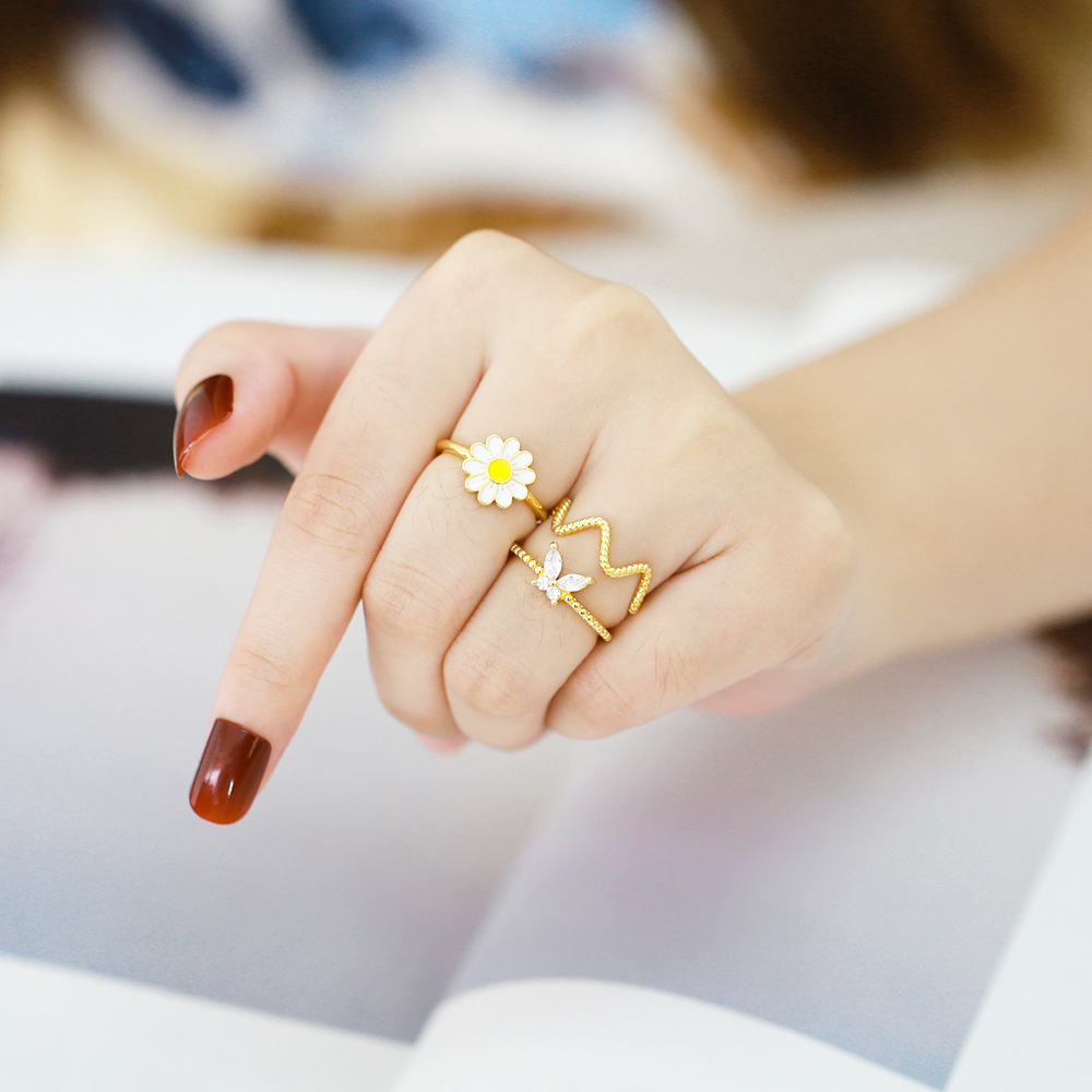 Clearance European and American style simple small daisy ring female fashion niche design love butterfly ring rik68