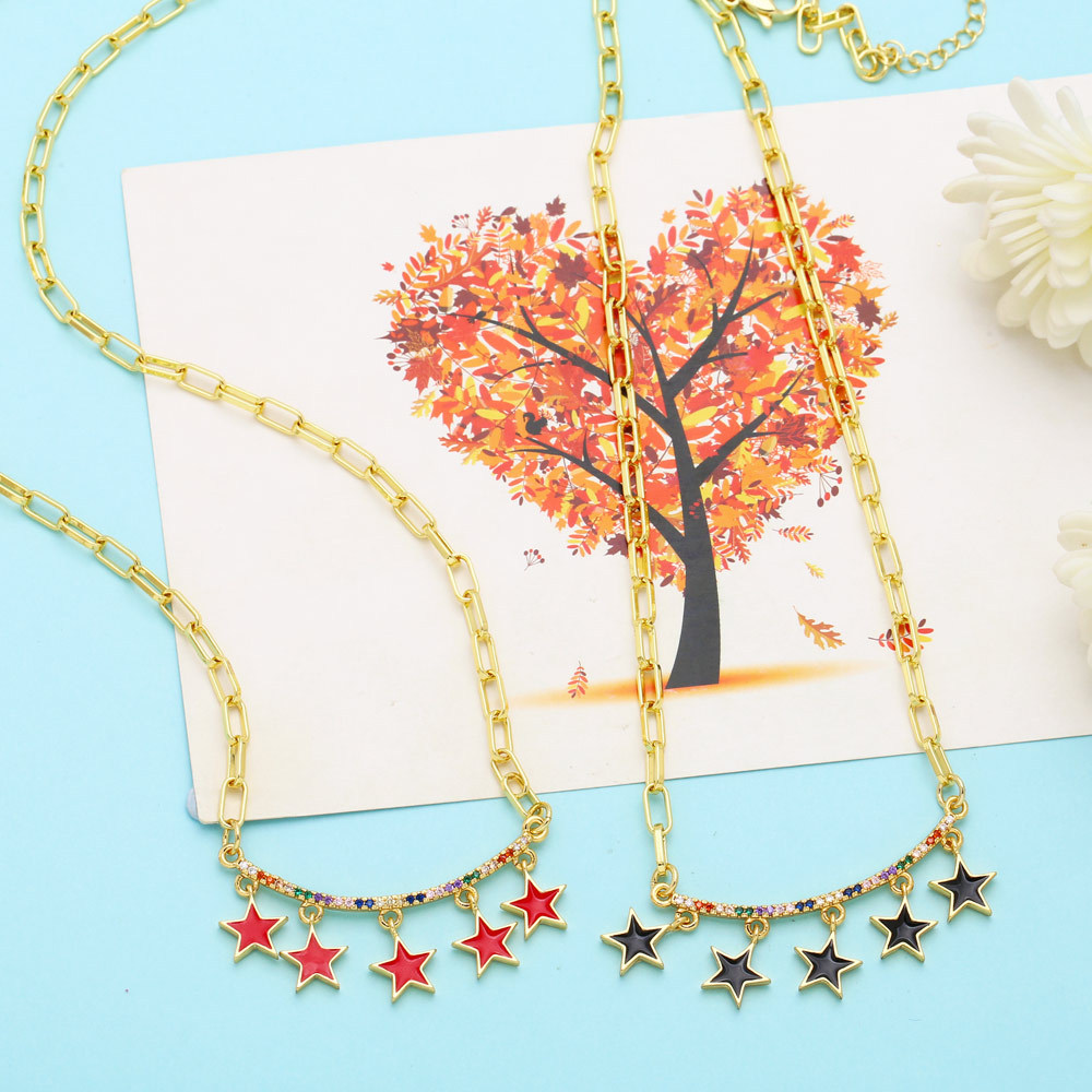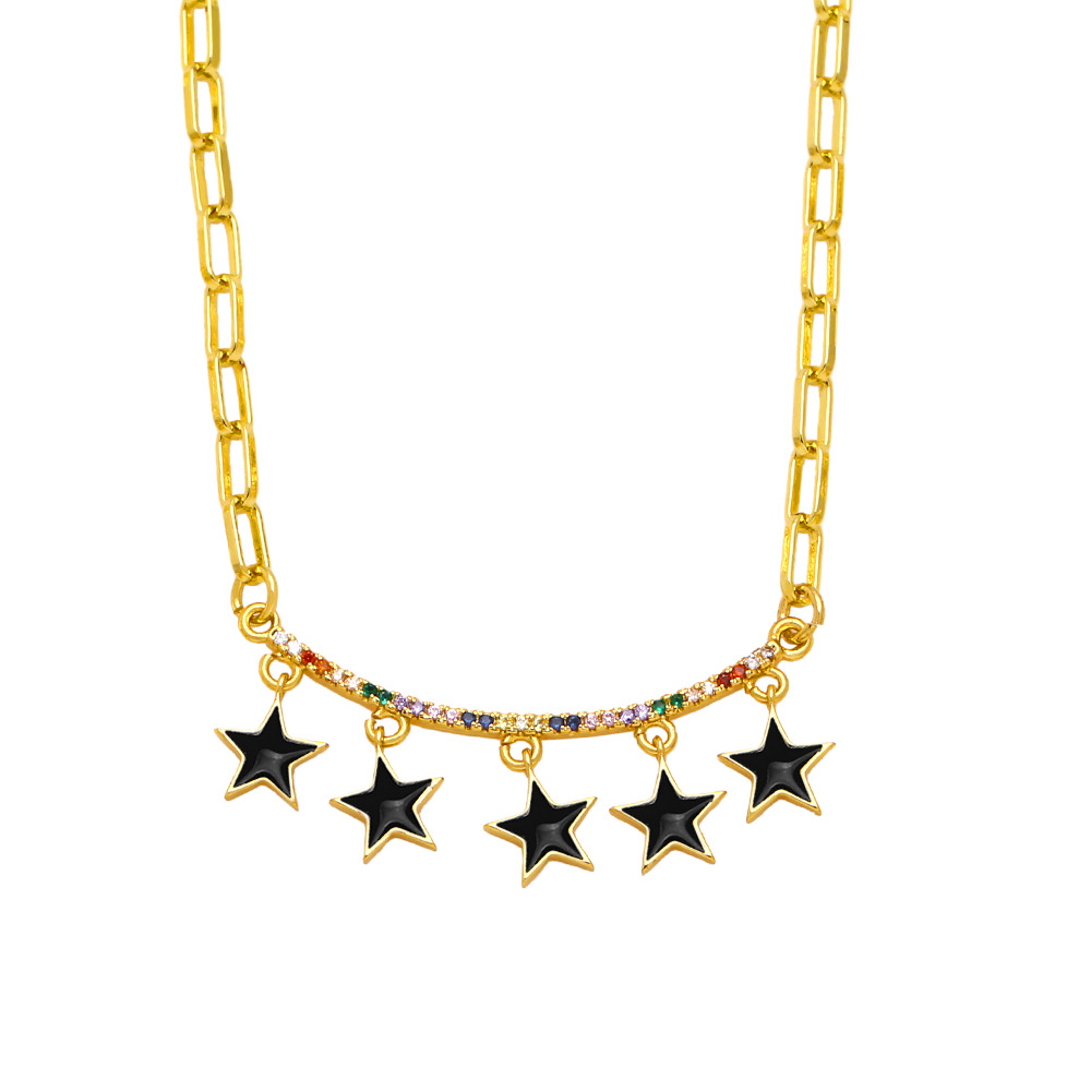 Clearance European and American style splicing five-pointed star necklace female trend cold style female hip-hop sweater sweater chain nkb559