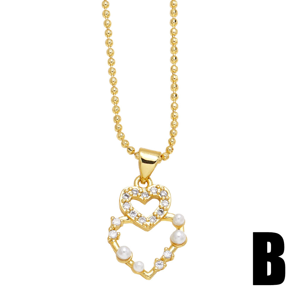 Clearance European and American style spring and summer diamond pearl heart pendant necklace female simple versatile clavicle chain wholesale nkp39