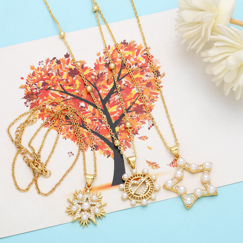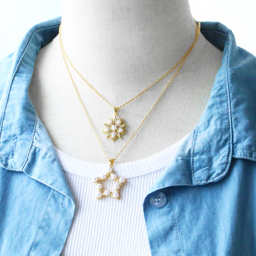 Clearance European and American temperament star five-pointed star pearl necklace niche design geometric love pendant nkn66