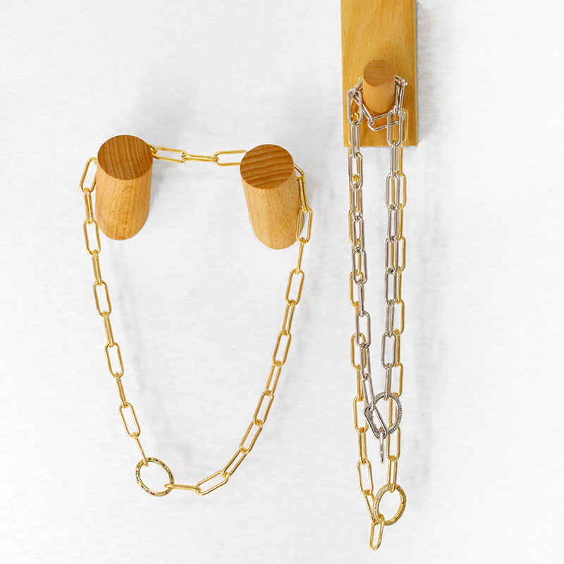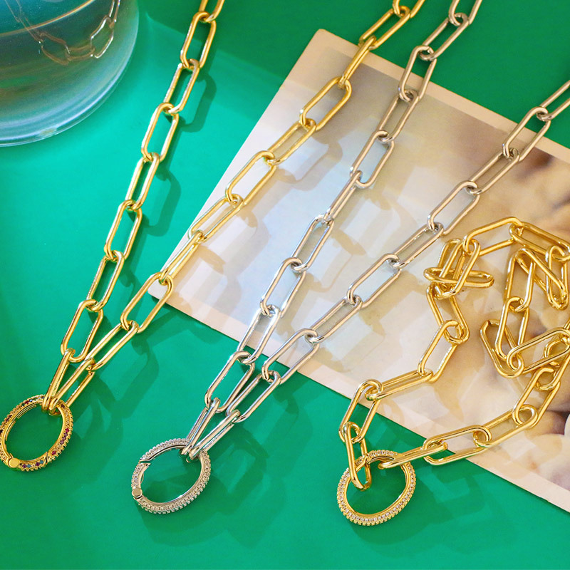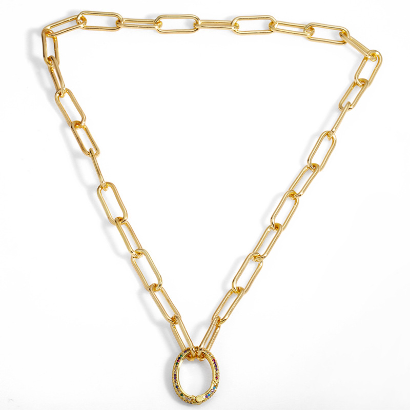 Clearance European and American thick chain metal diamond geometric oval pendant splicing necklace female trend INS necklace nkv91
