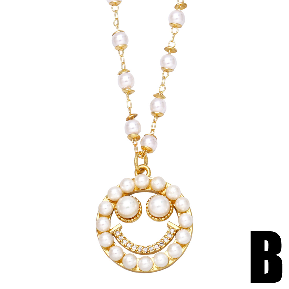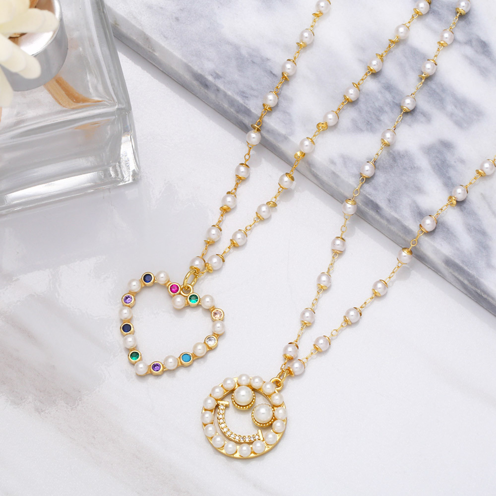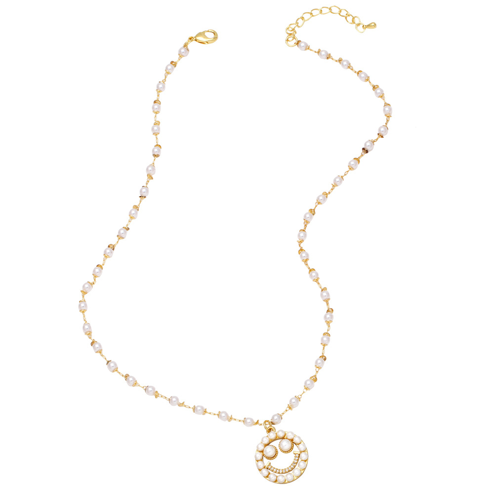 Clearance European and American trendy Internet celebrity temperament love pearl necklace female creative smiley expression clavicle chain nka041