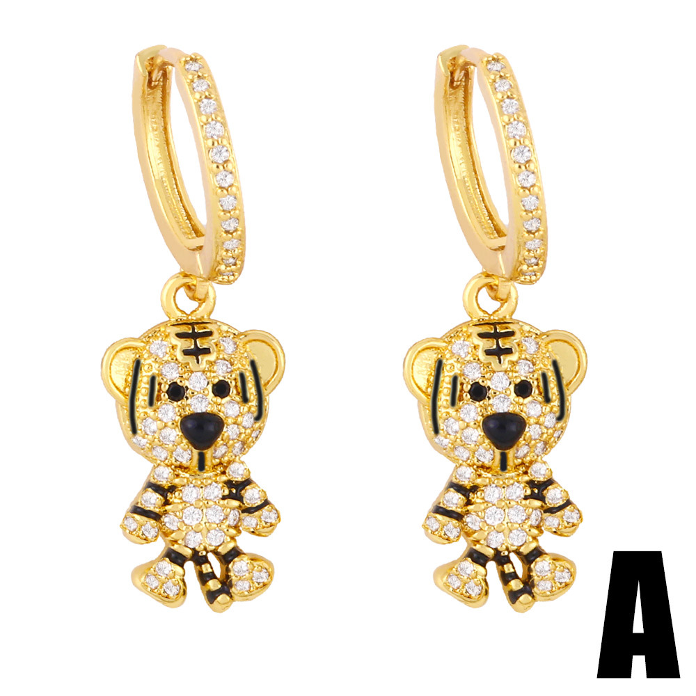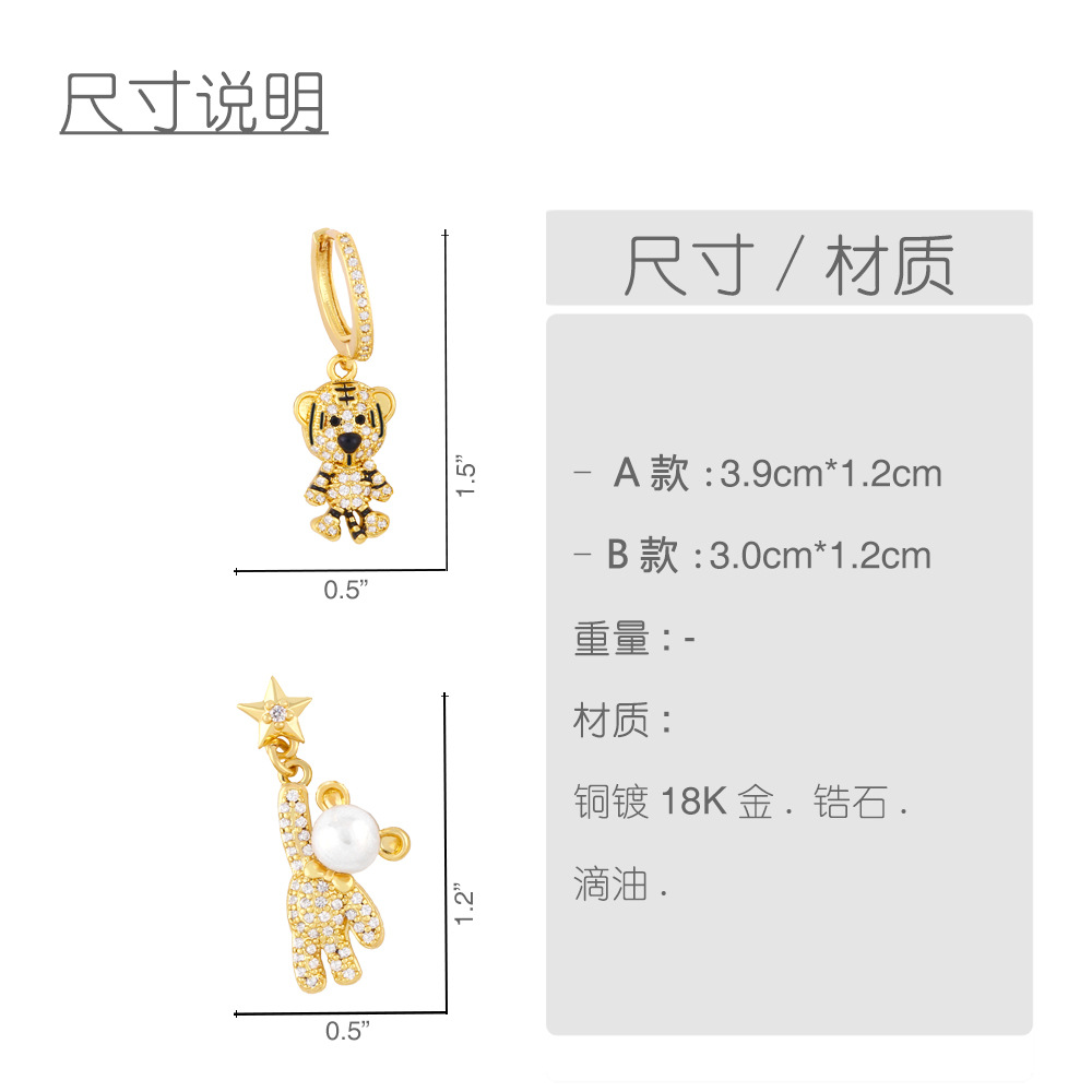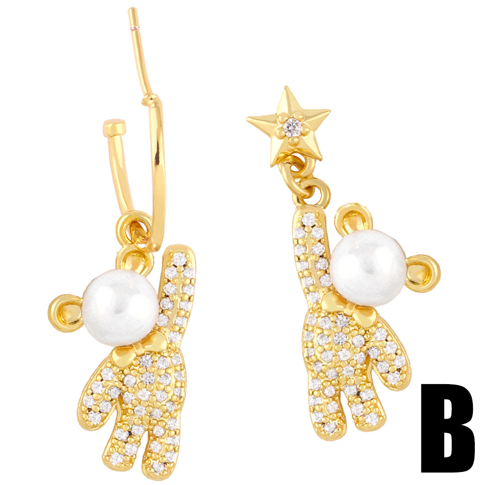 Clearance European and American trendy light luxury star-picking bear asymmetrical earrings net celebrity zircon pearl earrings wholesale erz56