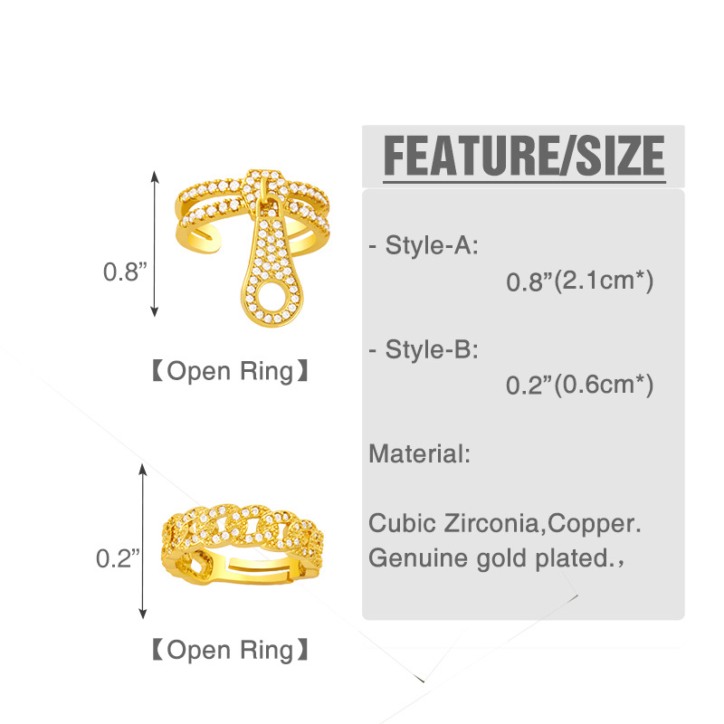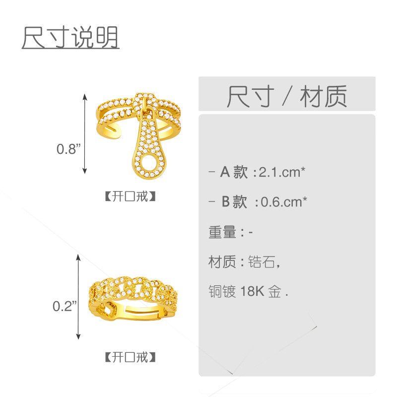 Clearance European and American trendy zipper head ring female personality design sense Internet celebrity 18K gold plated zircon ring rik34