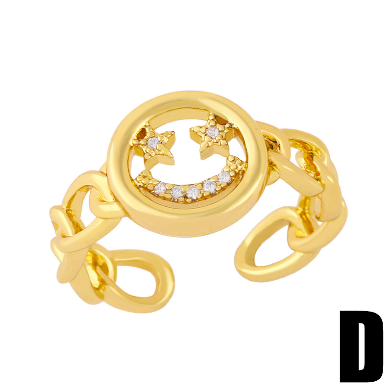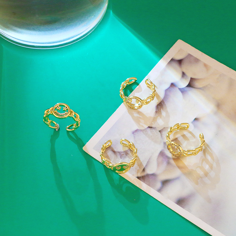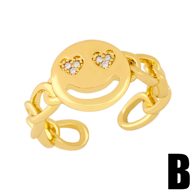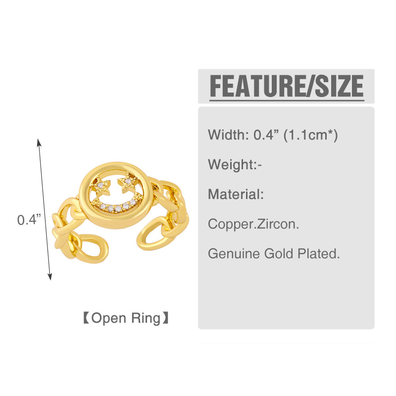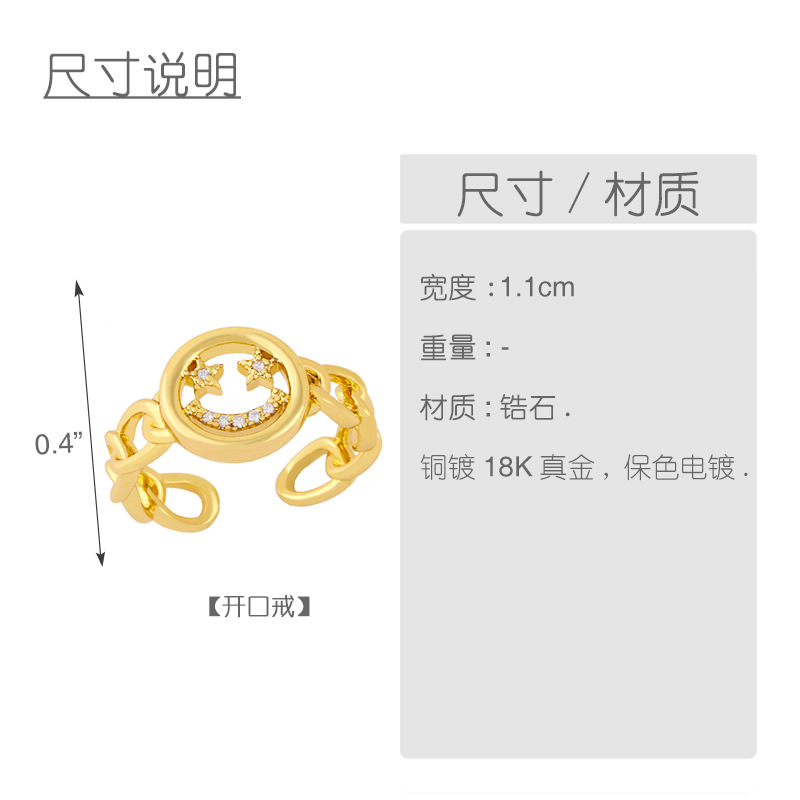 Clearance European and American zircon Cuban chain ring female 18K gold plated trend hiphop smiley face ring rim30