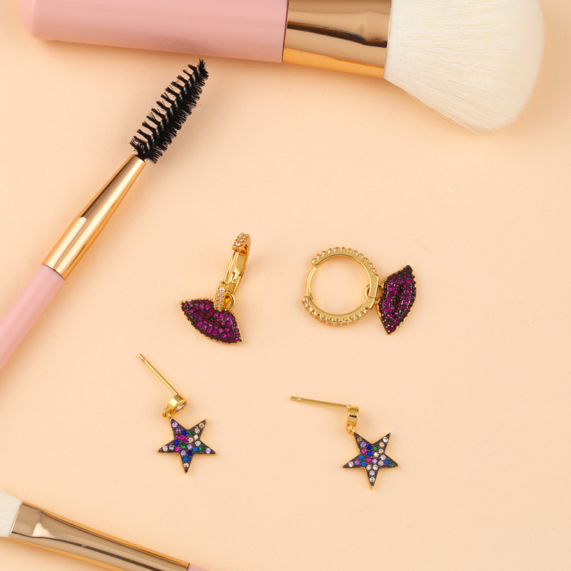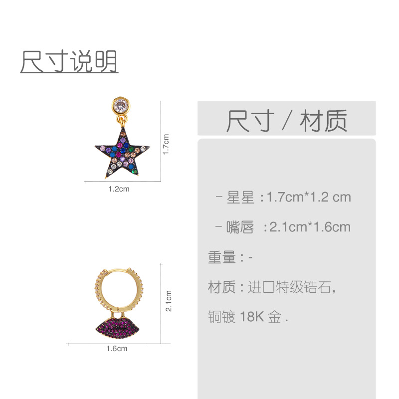 Clearance fashion girl lips star earrings earrings versatile micro-inlaid colorful zircon earrings female wholesale erq28