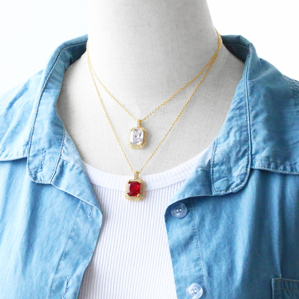 Clearance fashion square diamond zircon pendant necklace European and American personality fashion snake bone chain nks81