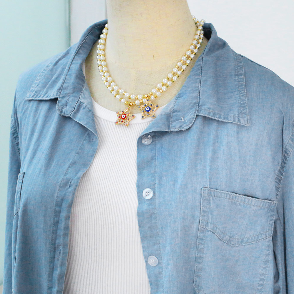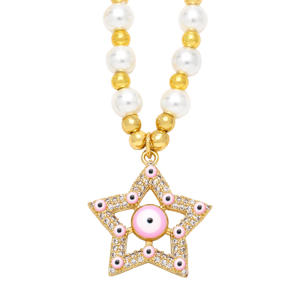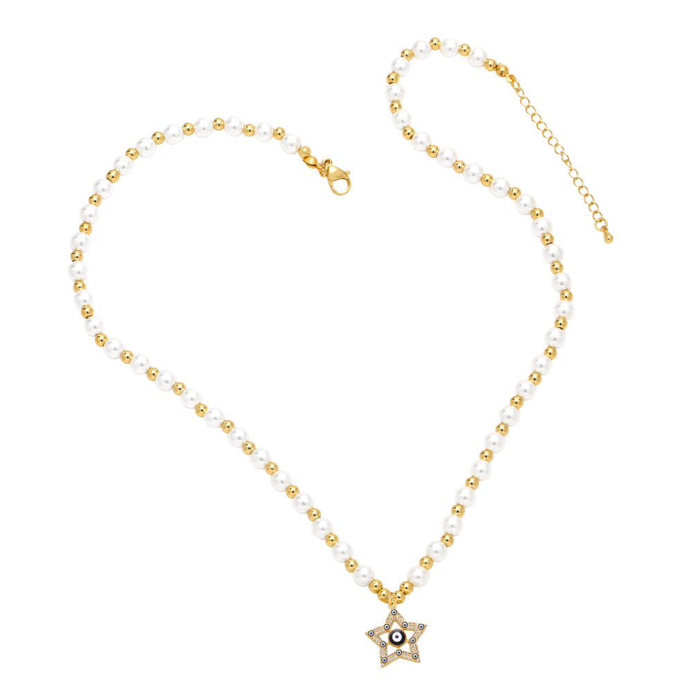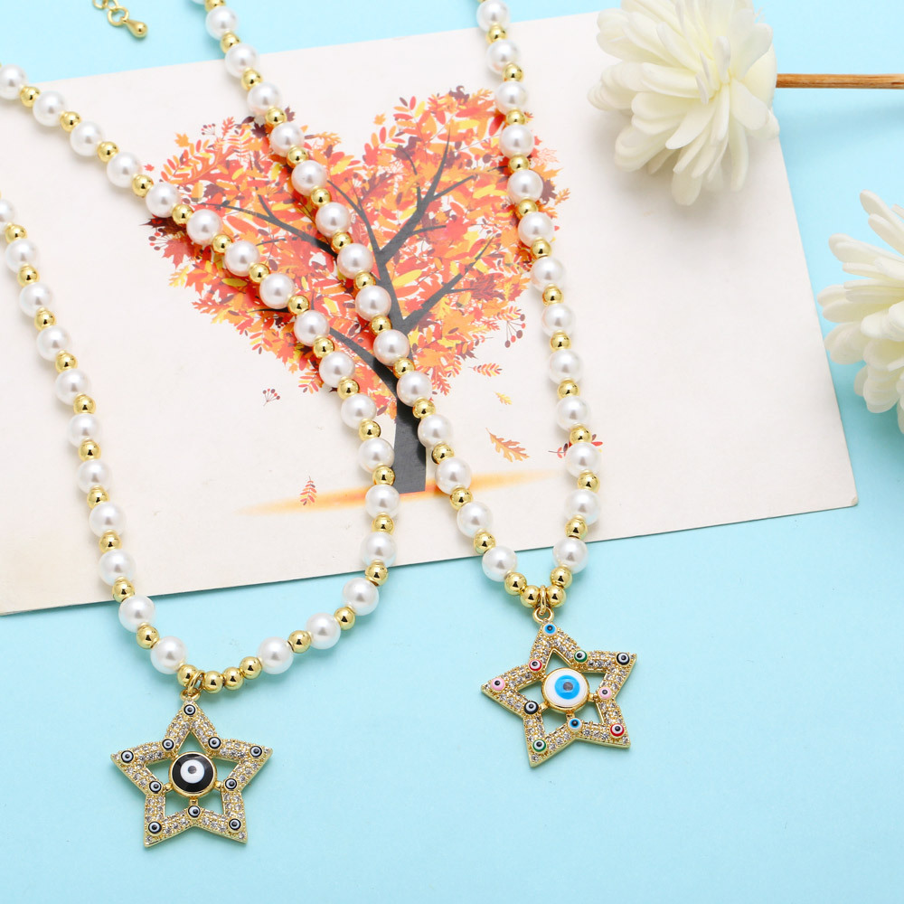 Clearance five-pointed star eye pendant temperament pearl necklace high-end devil eye necklace female nkb687