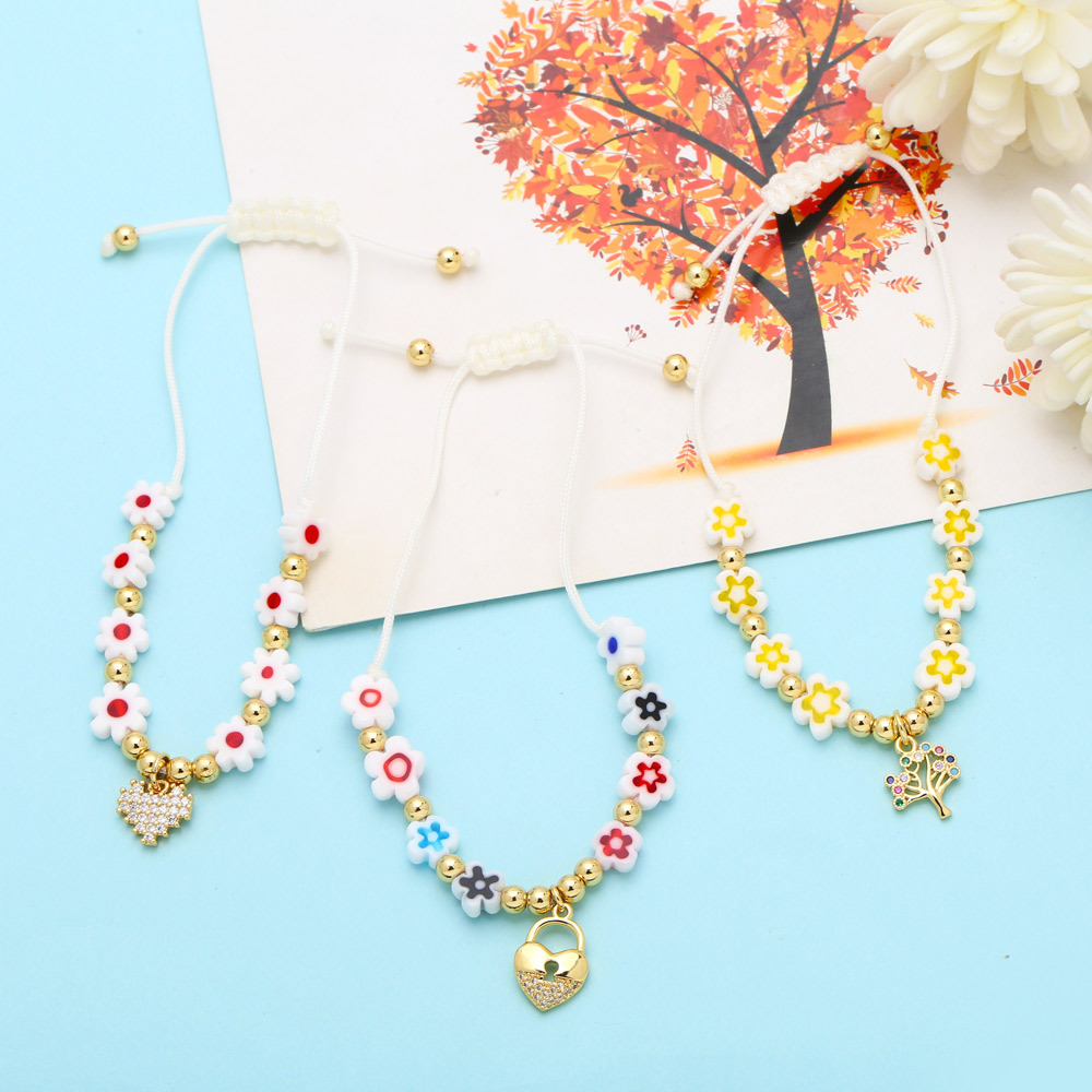 Clearance flower bracelet women's love bear pendant bracelet niche color girlfriends handmade beaded hand jewelry brj89