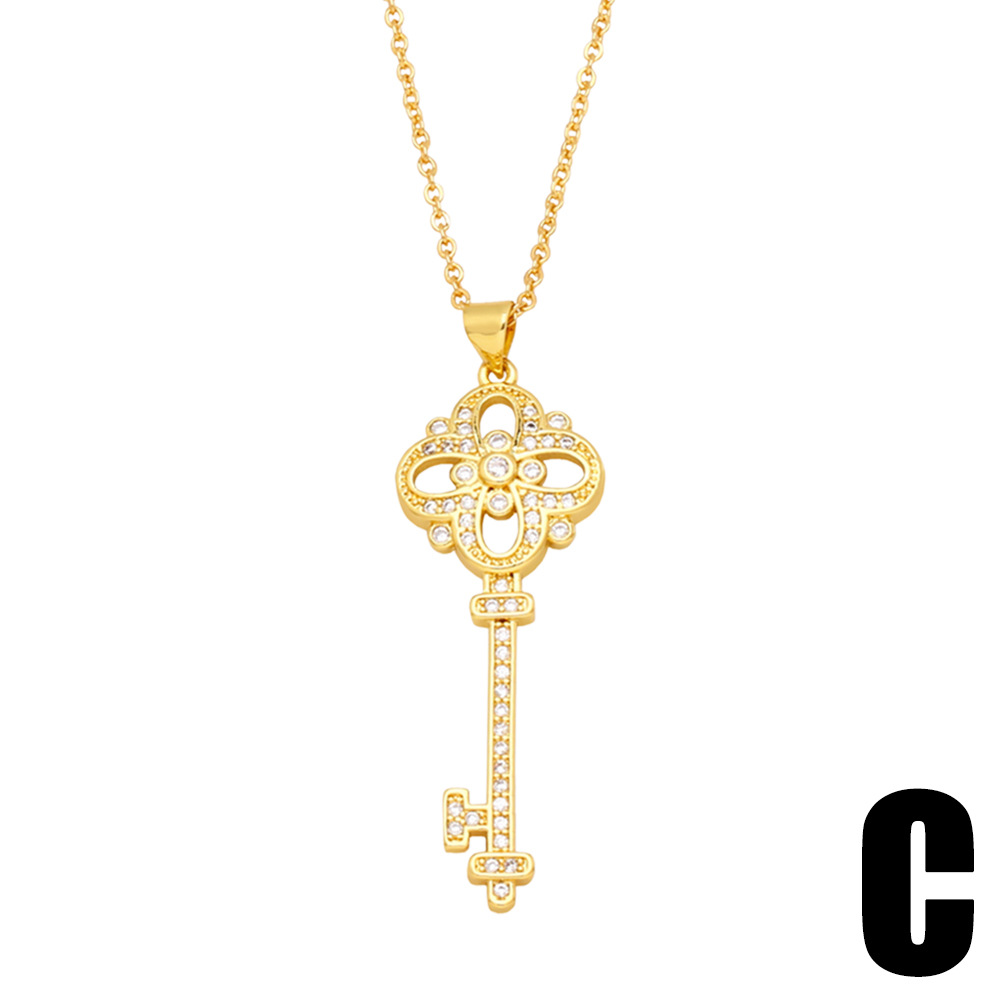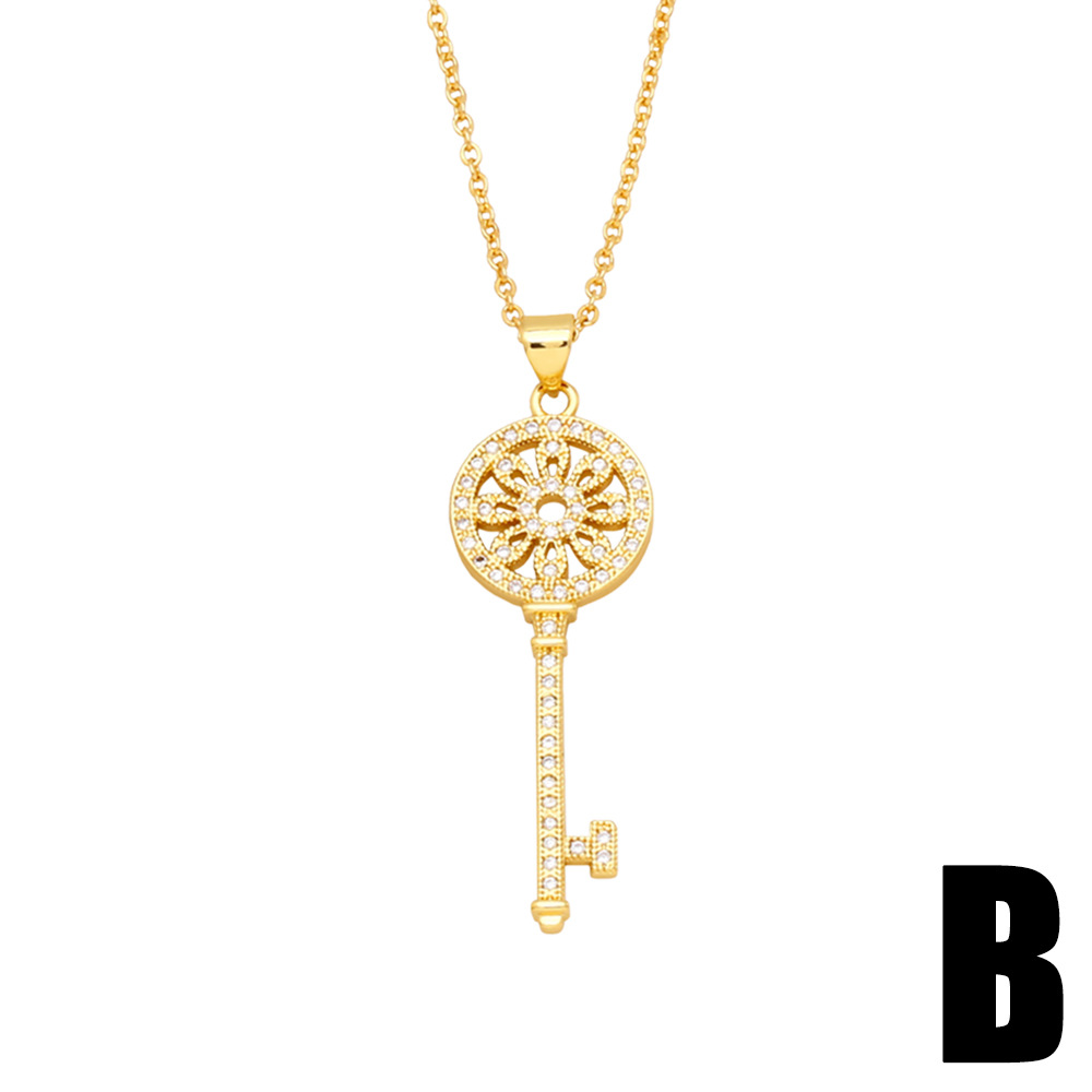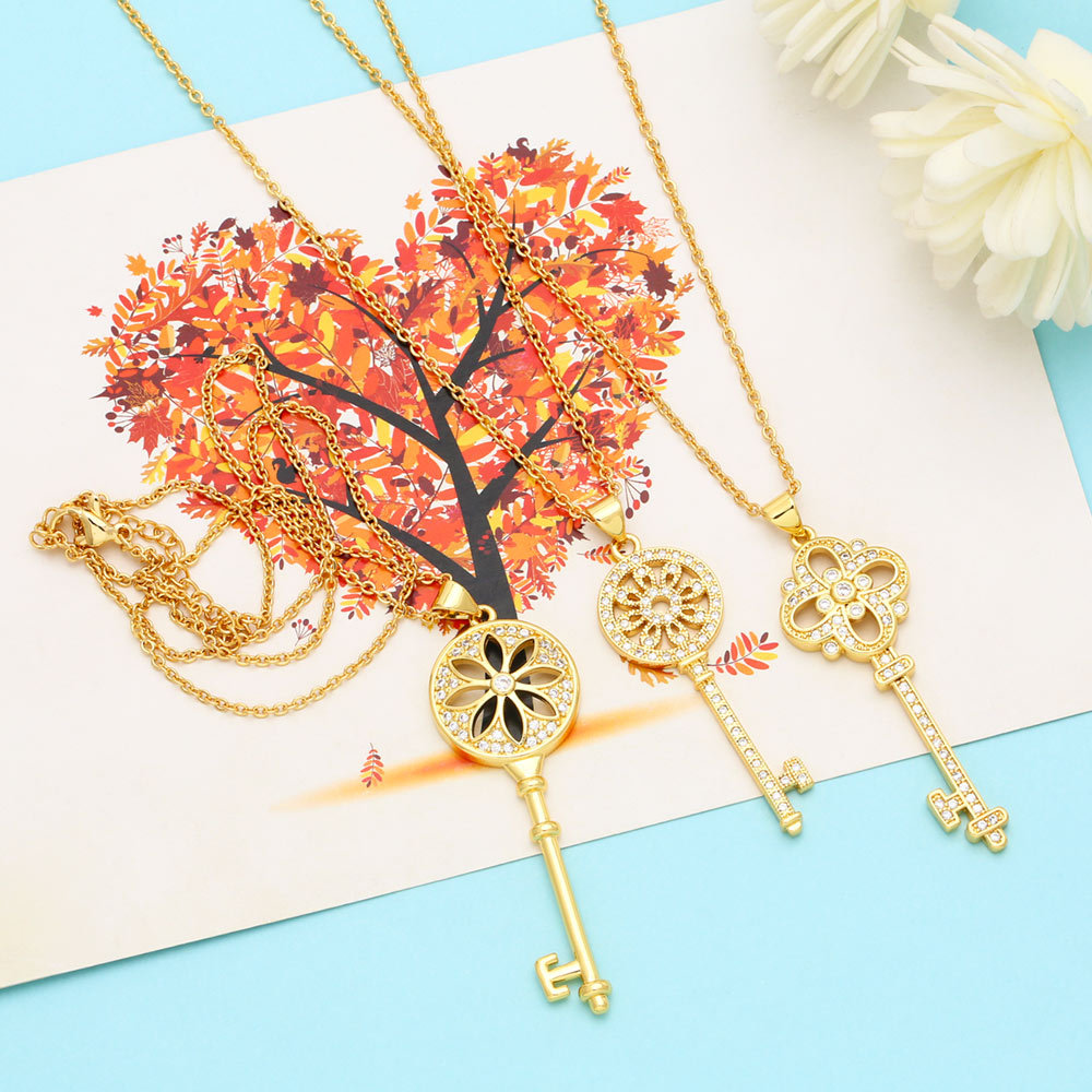 Clearance flower key necklace sweater chain women's European and American simple diamond accessories niche light luxury necklace nkb570