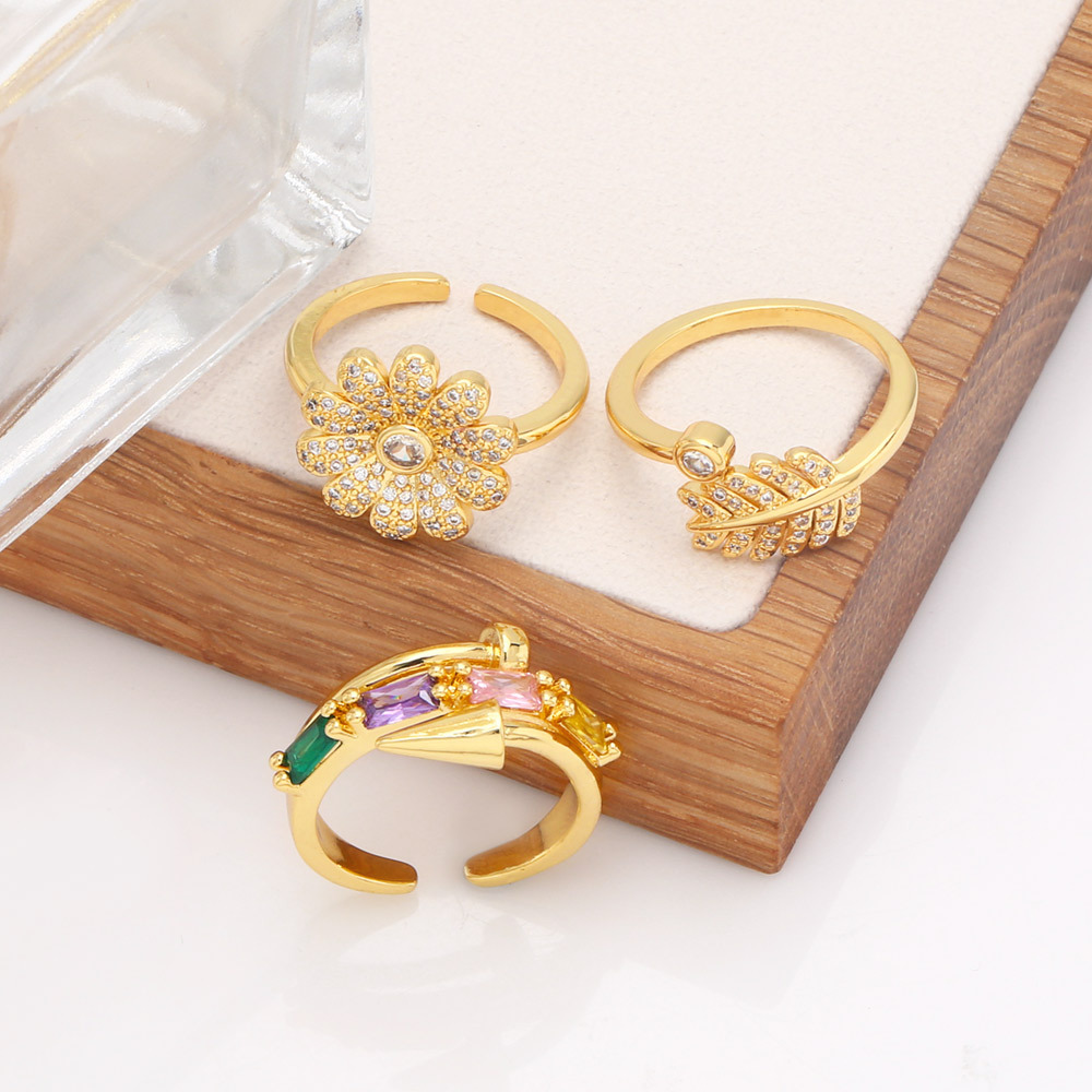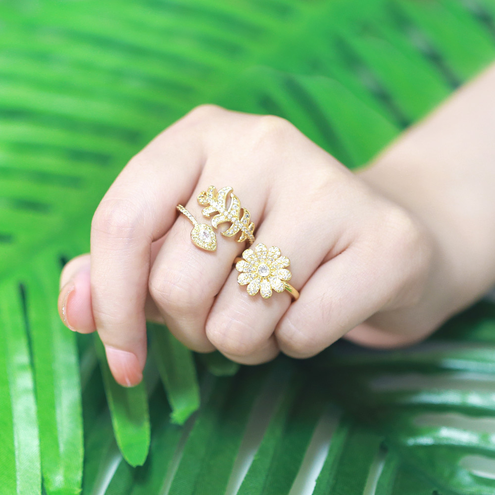 Clearance flower ring women's trendy internet celebrity cool style design zircon ring retro pinky ring wholesale rip95