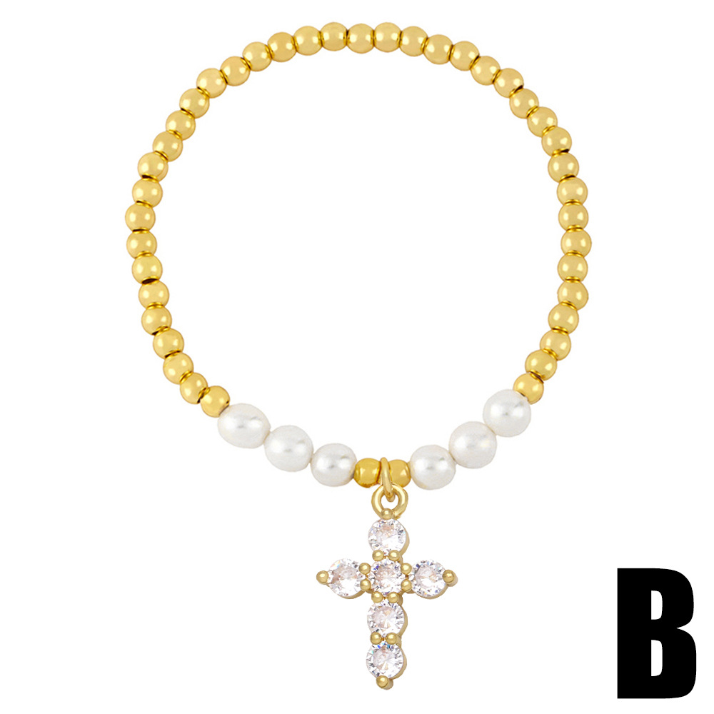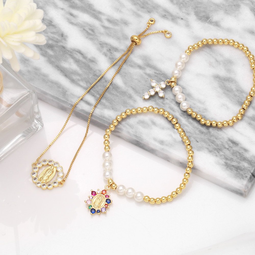 Clearance Freshwater Pearl Bracelet Niche High-end Cross Madonna Pendant Light Luxury Zircon Bracelet brf63