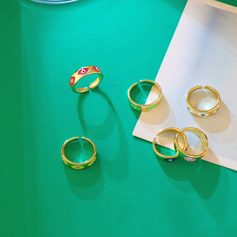 Clearance glossy oil drip eye ring net celebrity niche design exaggerated color ring bracelet female rik99