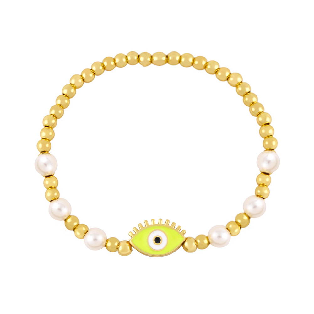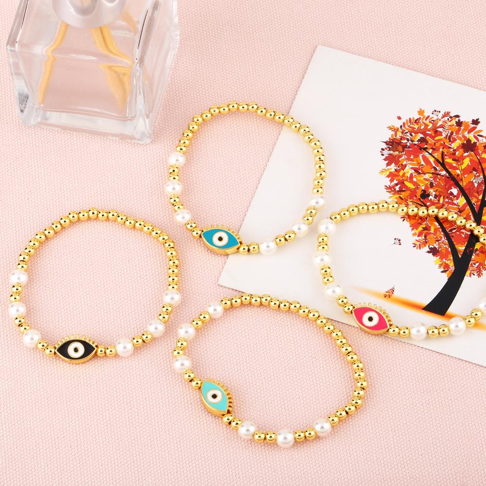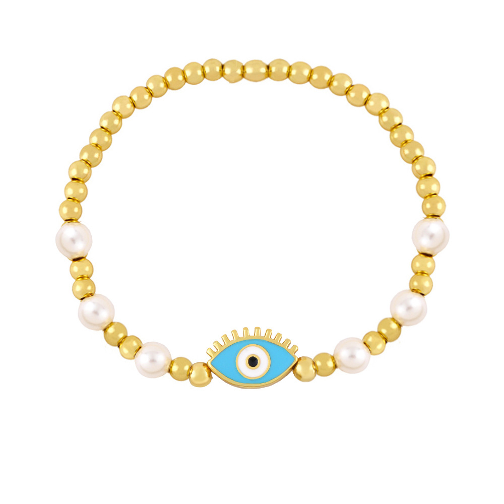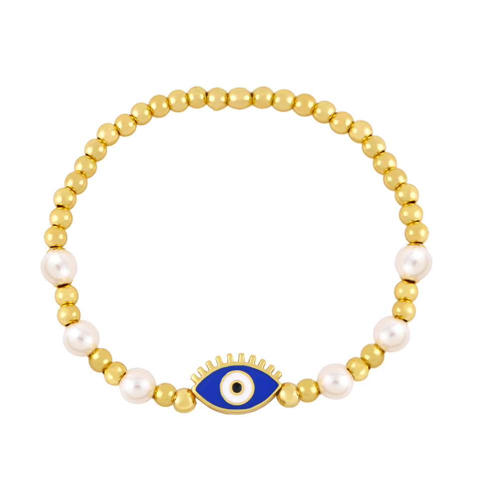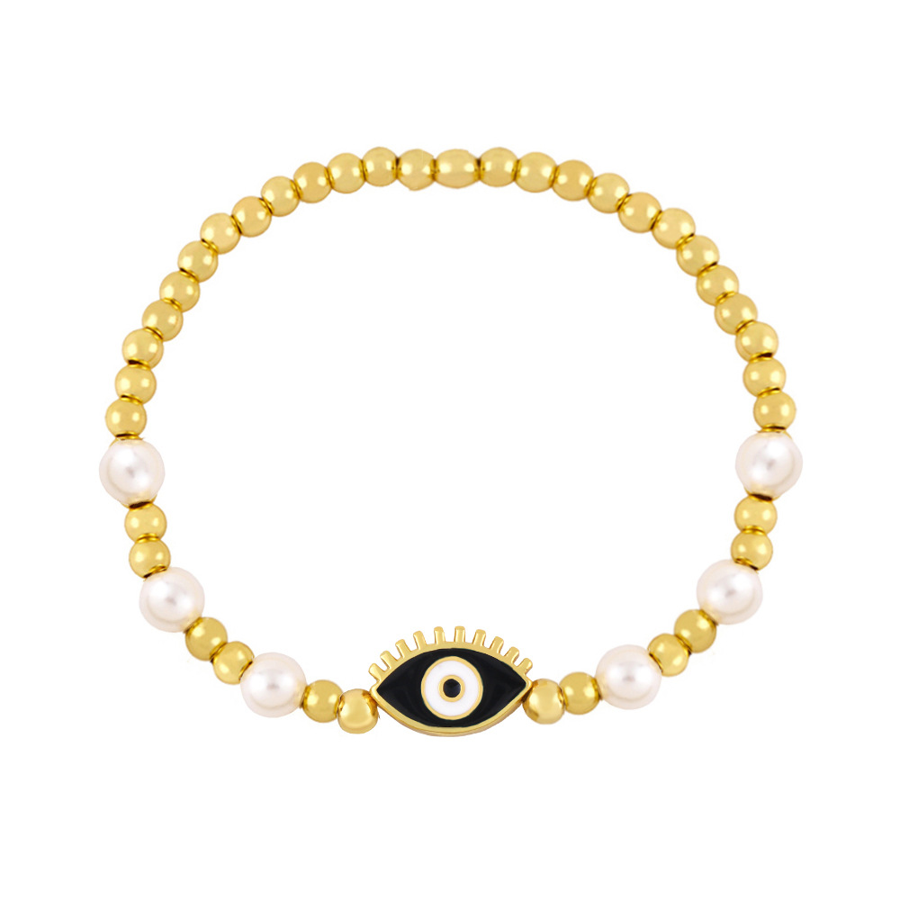 Clearance gold pearl beaded woven devil eye bracelet oil drip eye bracelet bre81