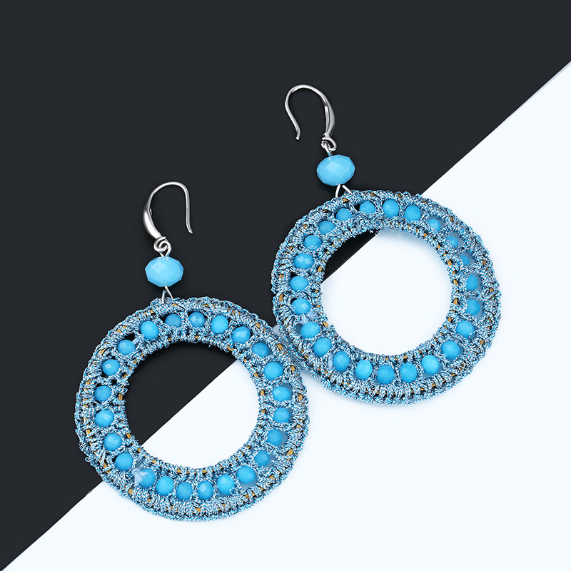 Clearance goods European and American style women's rice bead double hoop hand-woven earrings trendy earrings erm89