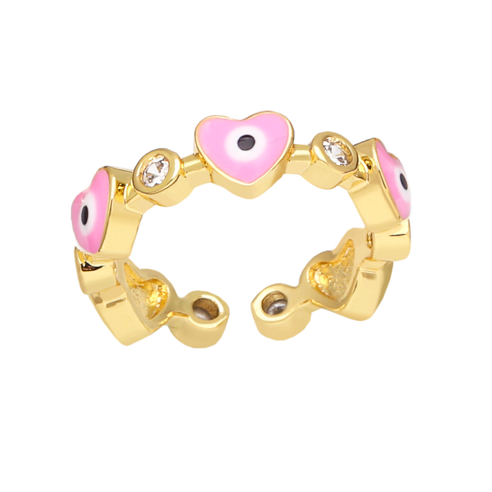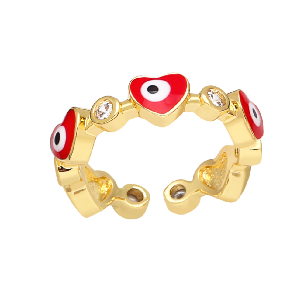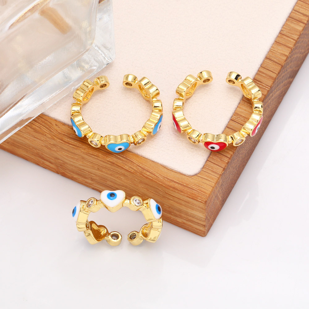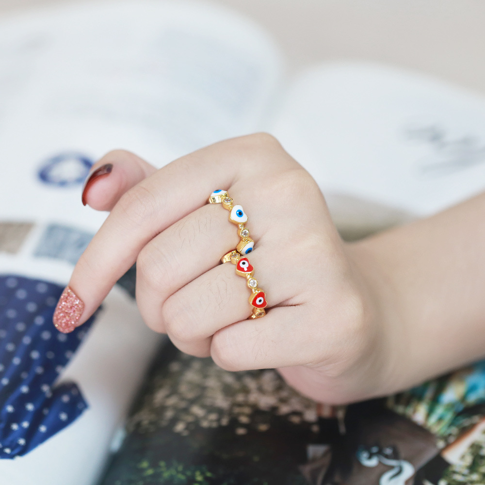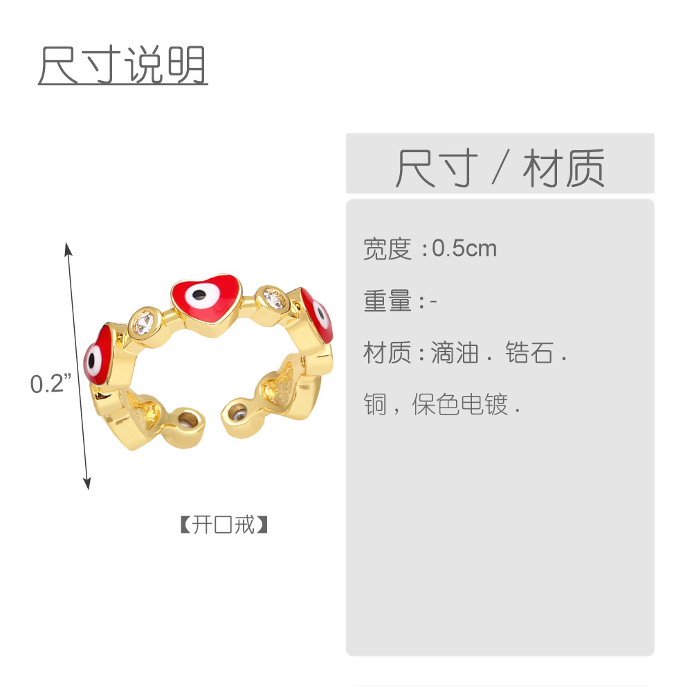 Clearance heart-shaped devil eye ring European and American style fashion oil drop love eye open ring riq99