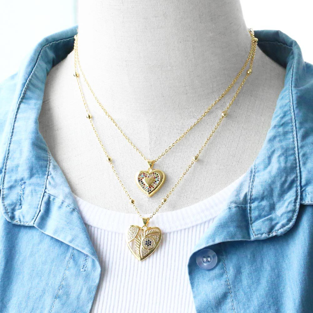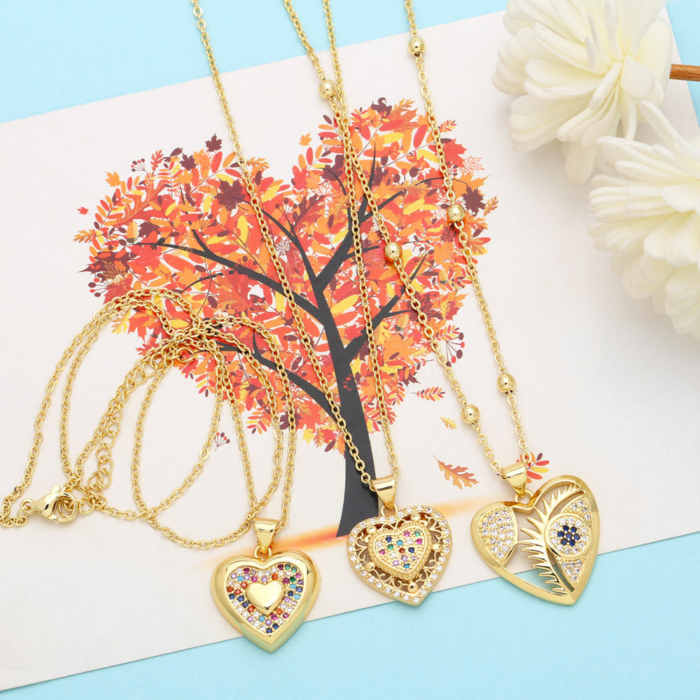 Clearance Heart-shaped Devil's Eye Necklace Women's European and American Fashion Inlaid Colored Zircon Love Pendant Clavicle Chain nkn75