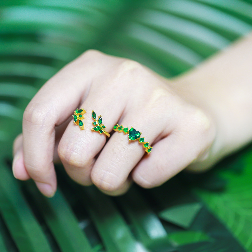 Clearance high-end emerald malachite green zircon ring female niche green diamond cross love ring rip51