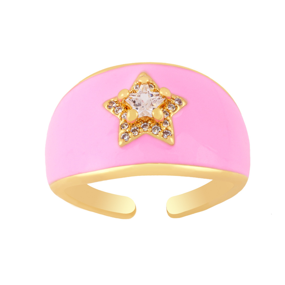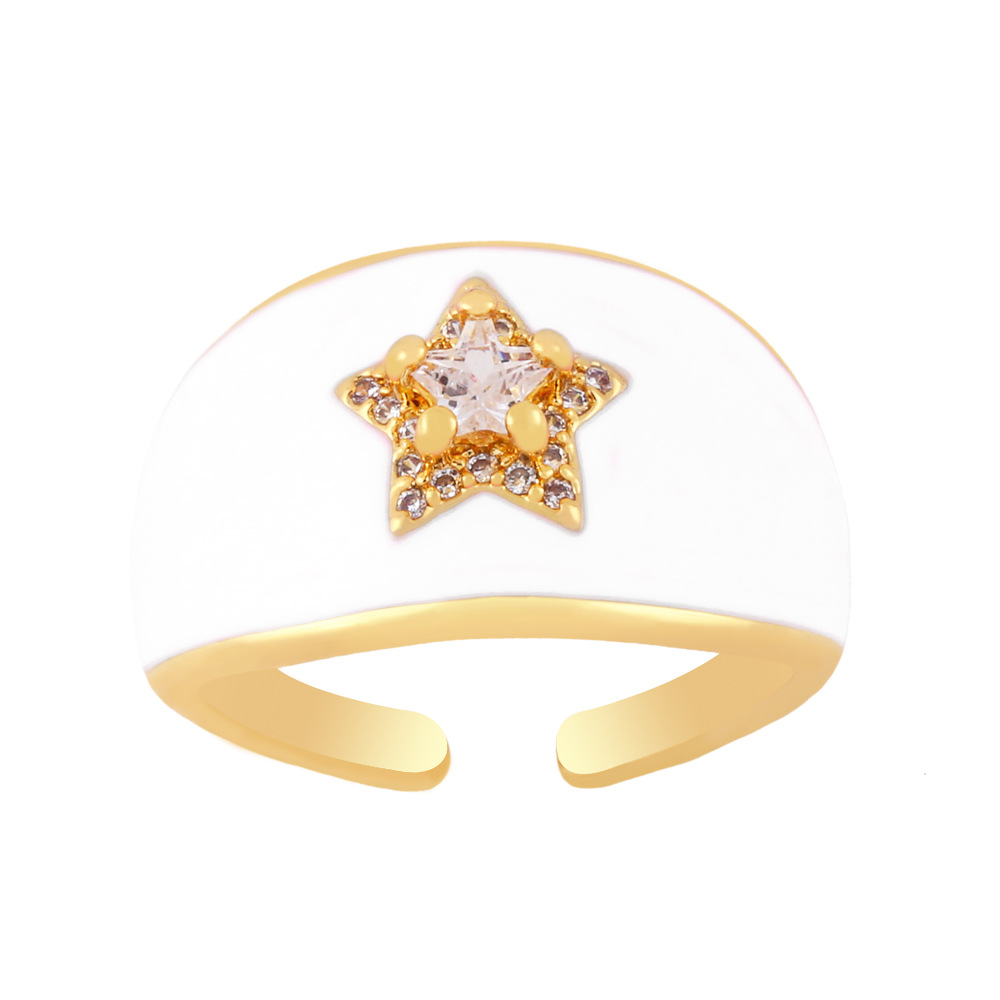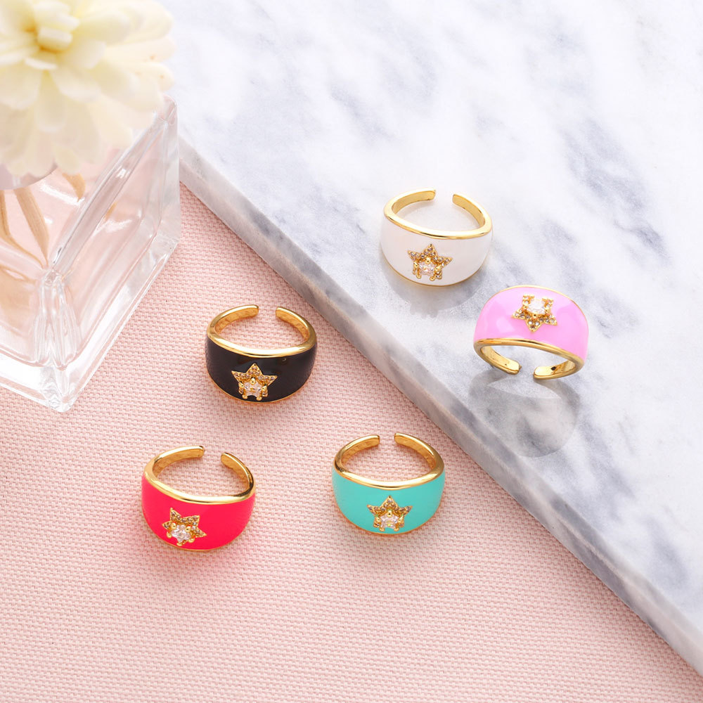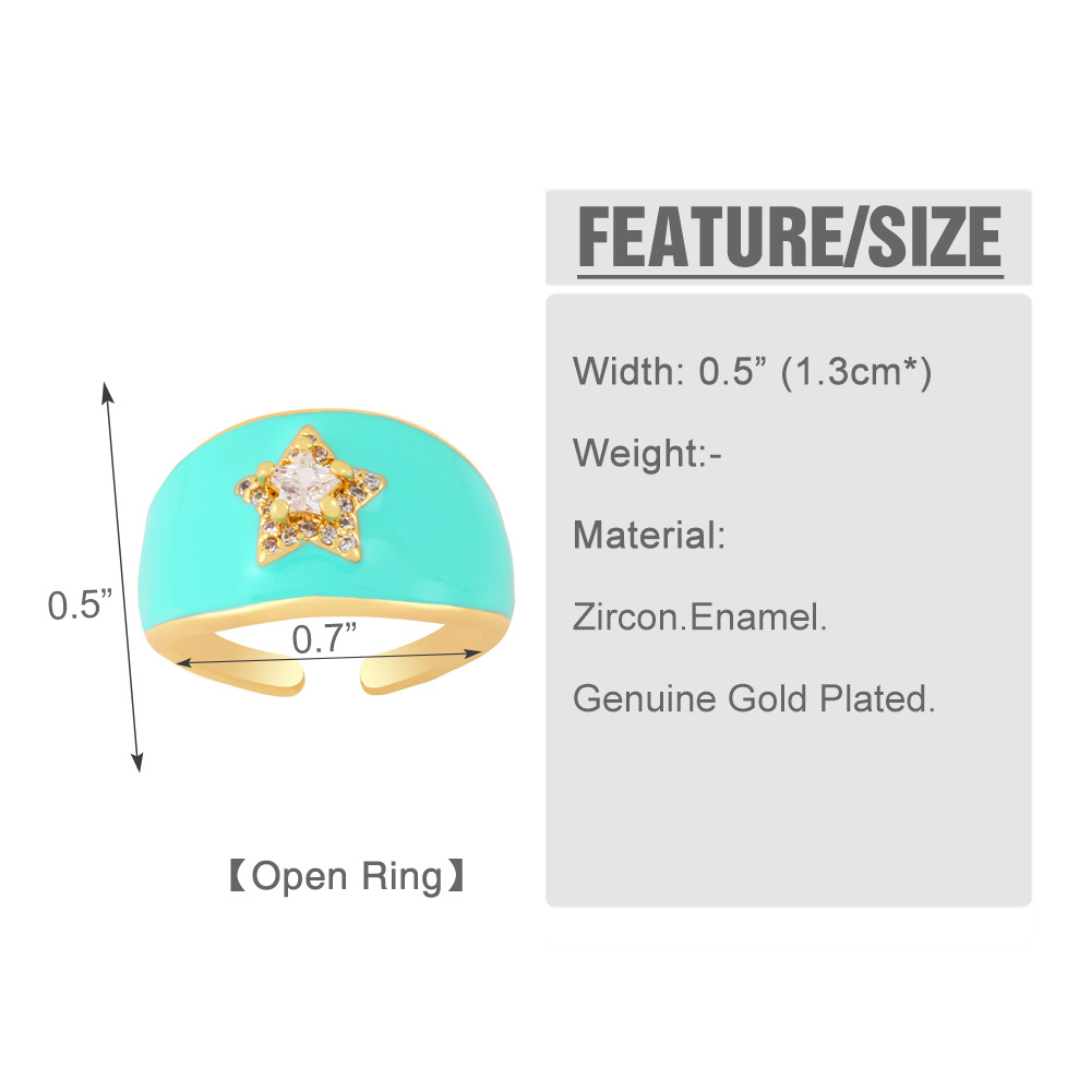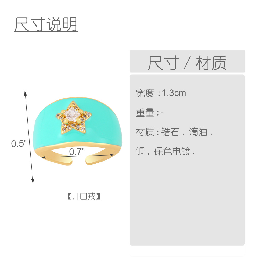 Clearance hot sale color oil drop wide face geometric star zircon ring five-pointed star ring rin68