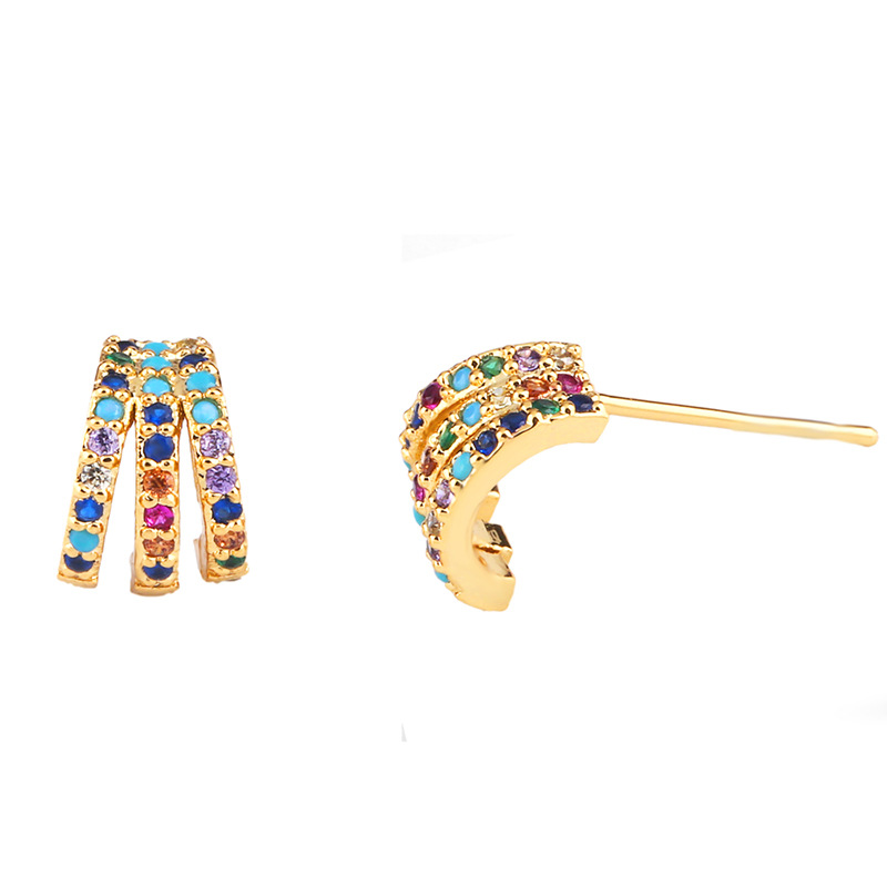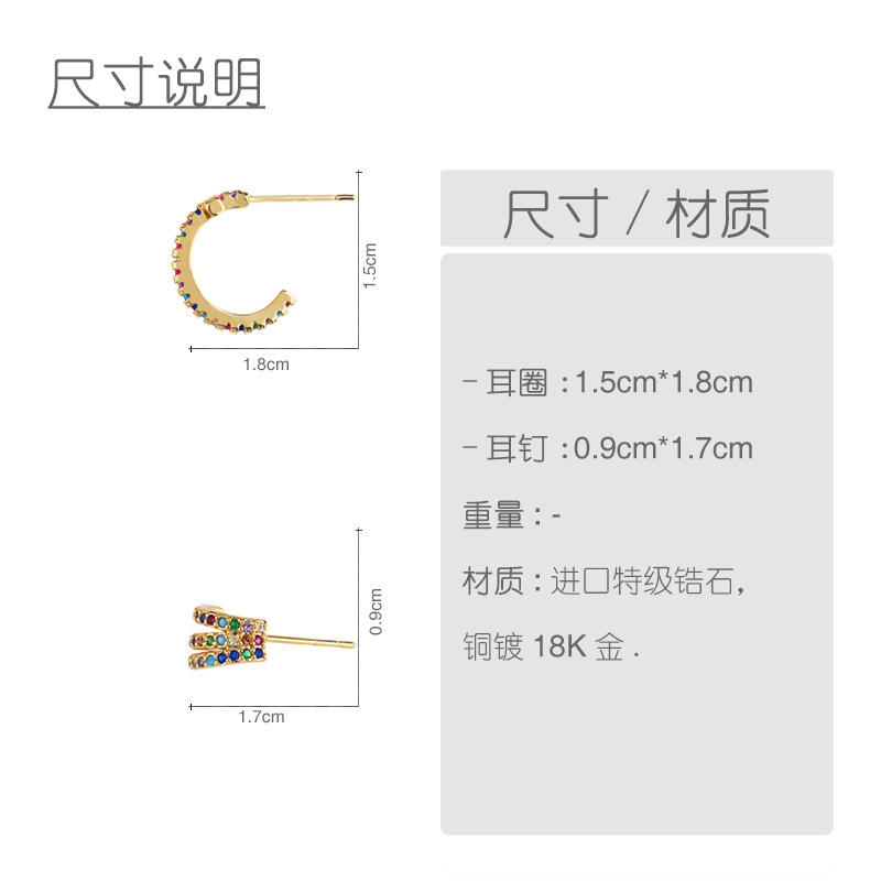 Clearance hot sale cross earrings diamond earrings C-shaped fashion colorful zircon earrings ear pin erq23