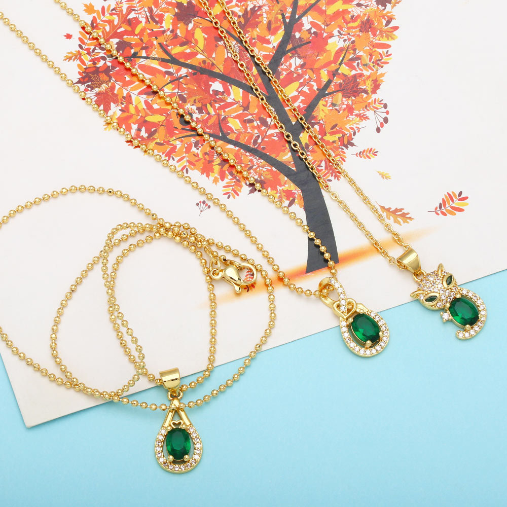 Clearance hot sale emerald zircon necklace net red clavicle chain European and American style necklace nkb393