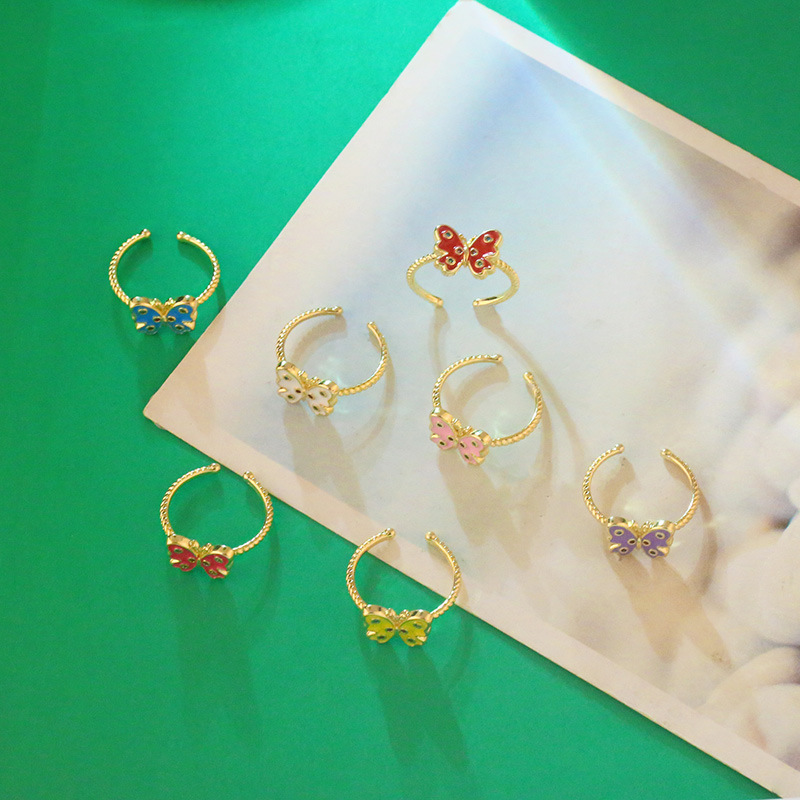 Clearance hot sale European and American niche color oil drop butterfly ring fashion style interesting index finger ring rim81