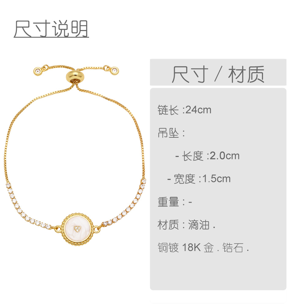 AS jewelry full zirconium 26 English letters bracelet copper plated real gold adjustment jewelry brm62