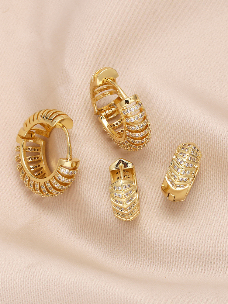 Clearance hot sale hollow earrings women light luxury round inlaid zircon gold-plated earrings earrings eru38