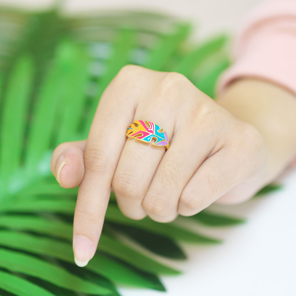 Clearance hot sale jewelry European and American oil drop leaf ring female Bohemian simple trend ring rin45