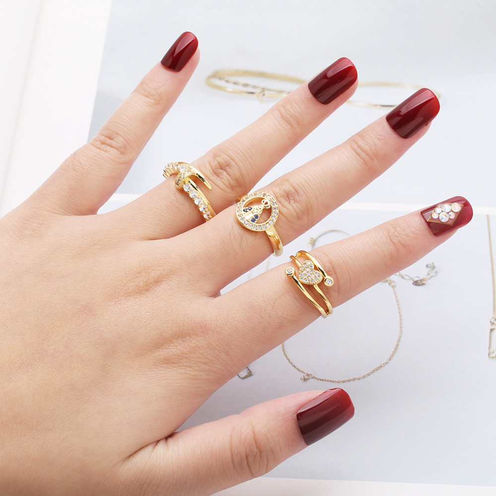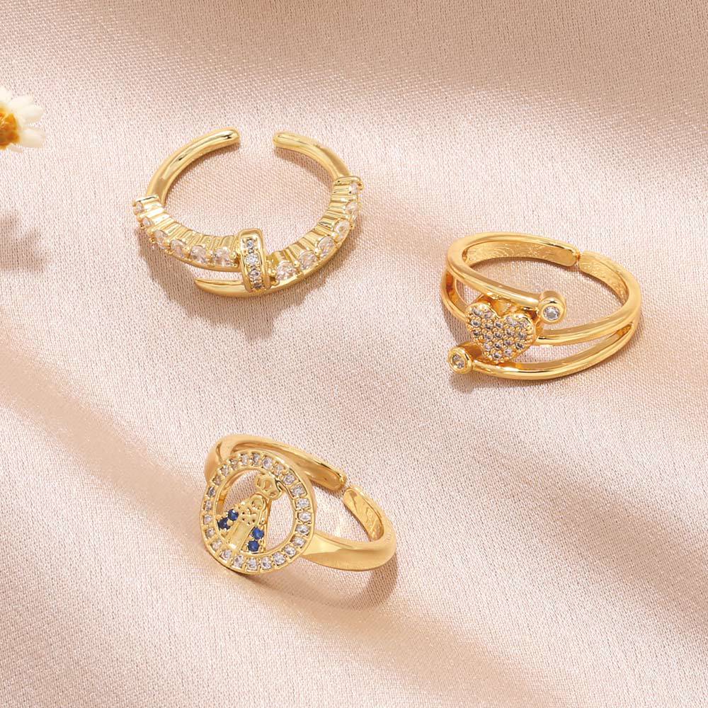 Clearance hot sale love ring female creative Virgin Mary double layer gold-plated zircon ring ris34