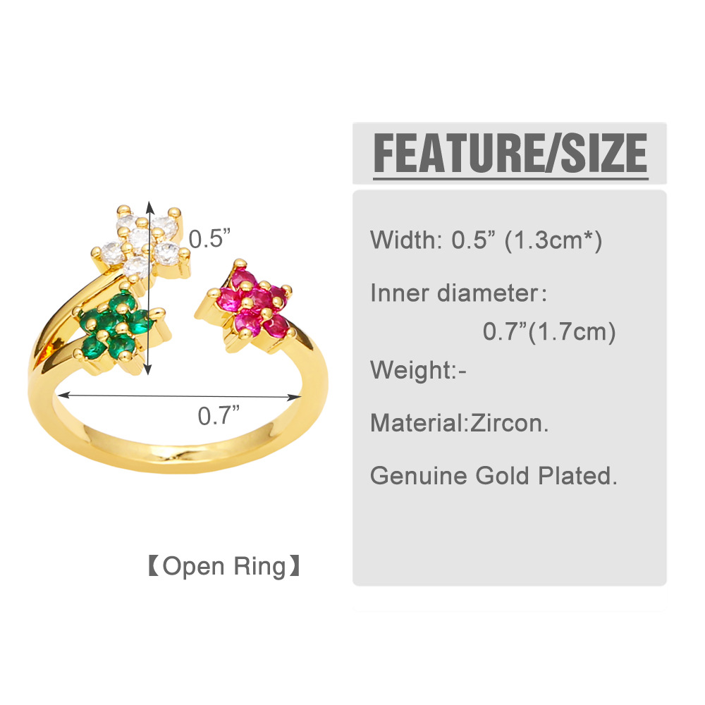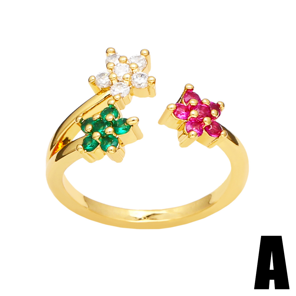 Clearance hot sale love ring female personality trend niche design inlaid with colored zircon flower ring rir97