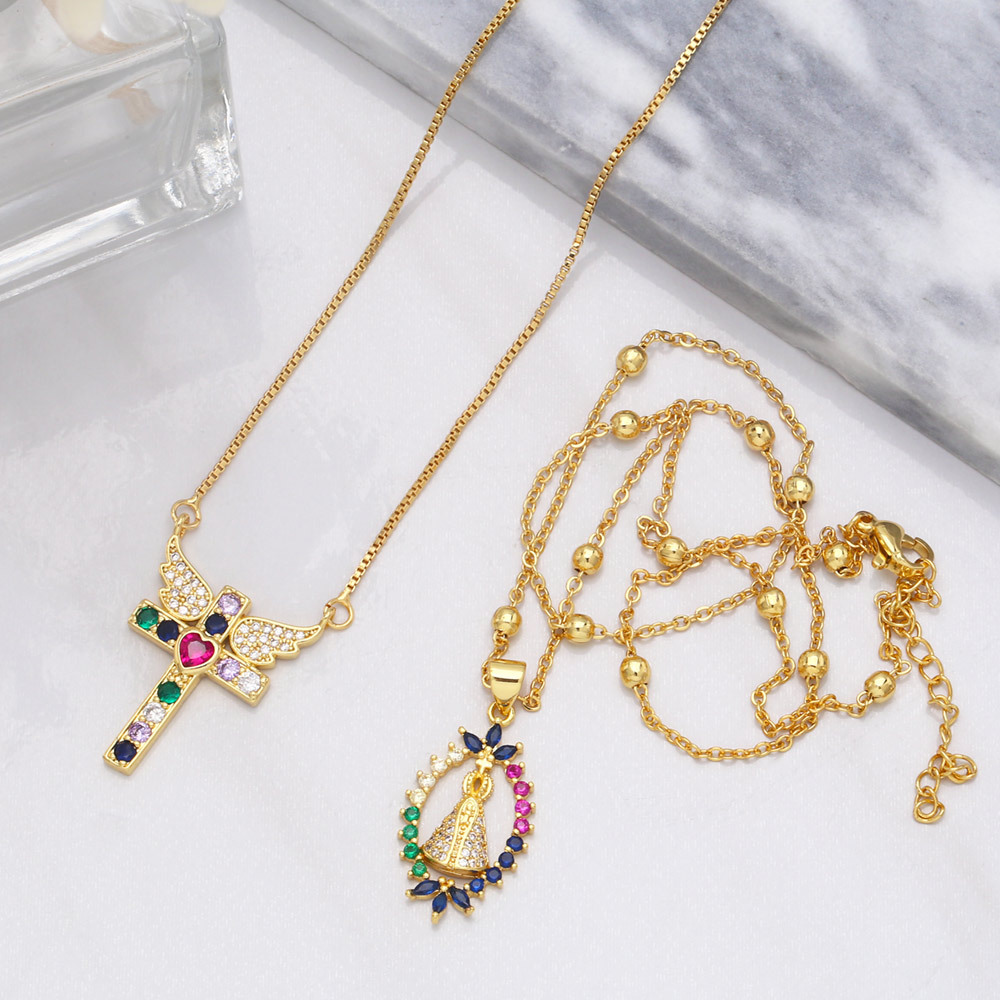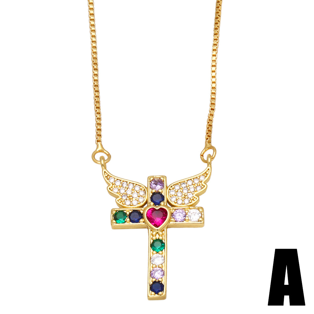 Clearance hot sale micro inlaid colored zircon cross wings necklace European and American style pendant female nkb248
