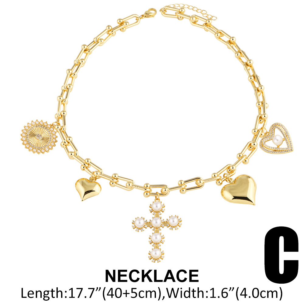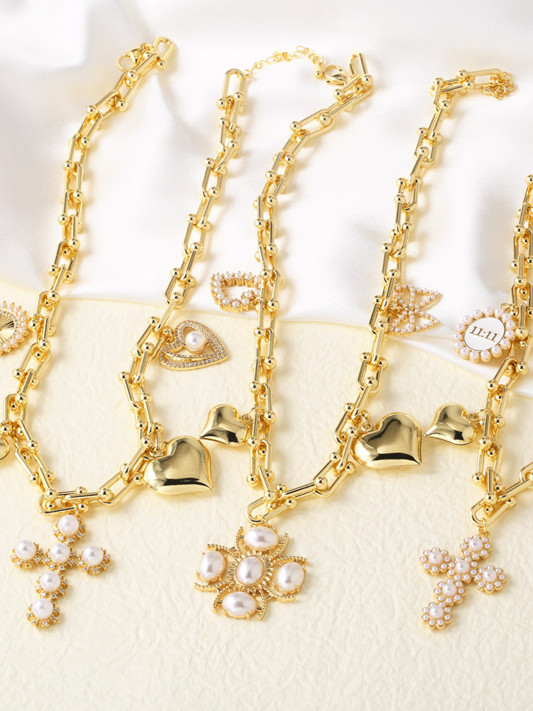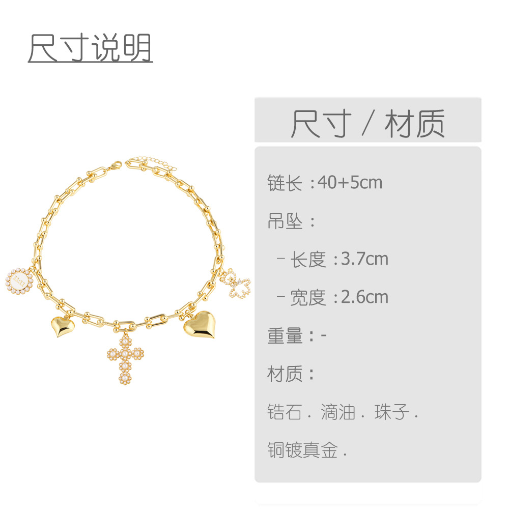 Clearance hot sale pearl cross love heart necklace female gold-plated clavicle necklace nkb118
