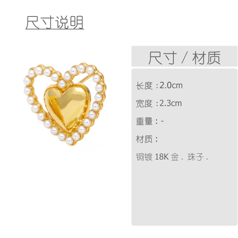 Clearance hot sale pearl heart earrings niche high-end copper plated 18k gold earrings earrings jewelry ery76