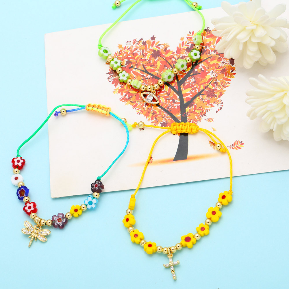 Clearance hot sale retro candy color glass flower bracelet net celebrity fashion rainbow bracelet female brj84