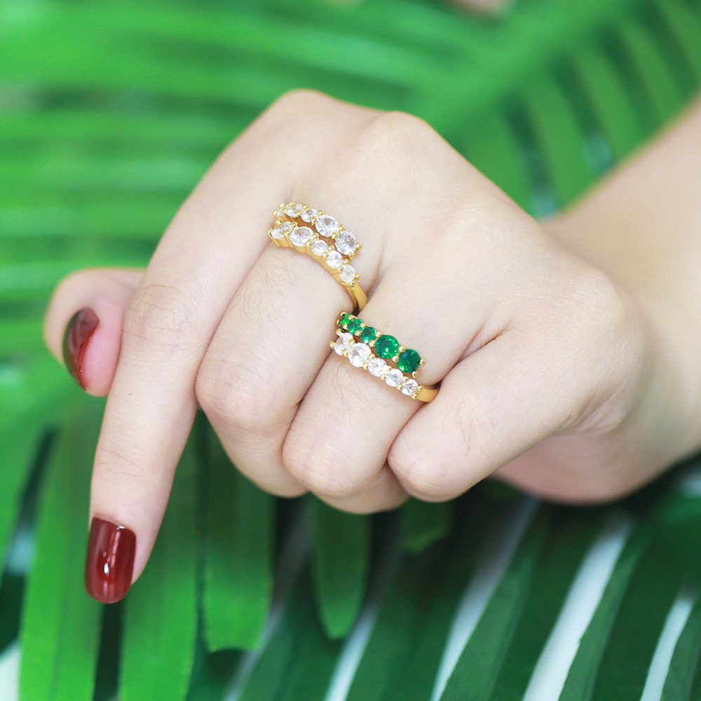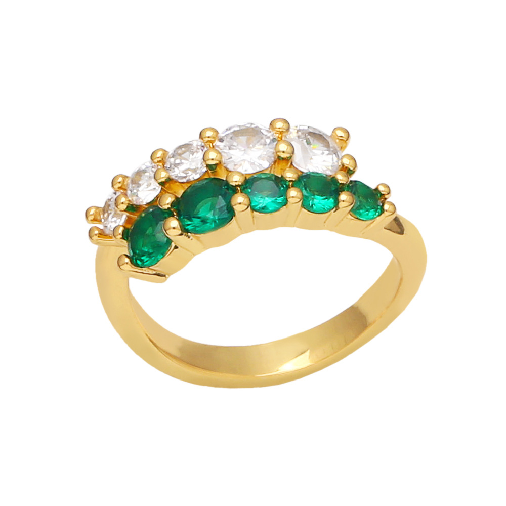 Clearance hot selling colored zircon jewelry wholesale European and American style color matching double row ring female riq03