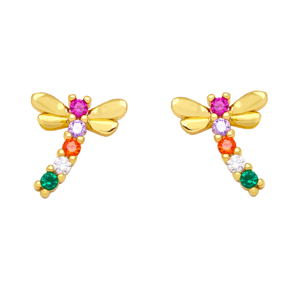 Clearance hot-selling earrings cute butterfly dragonfly heart color zirconium earrings earrings European and American earrings female ery94