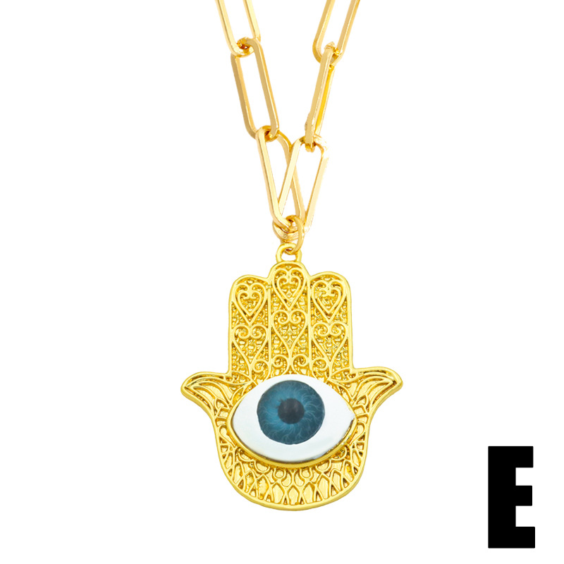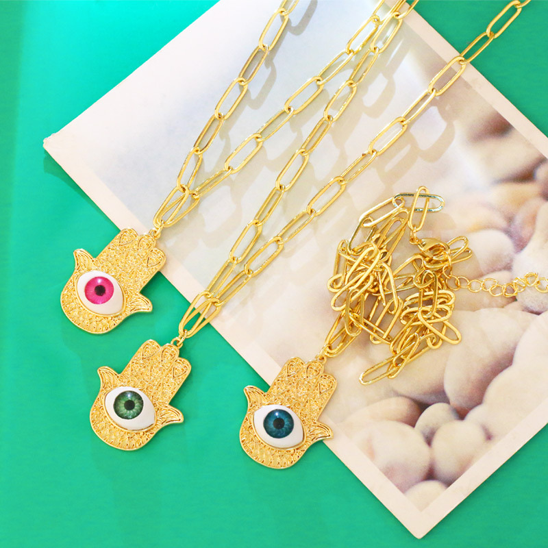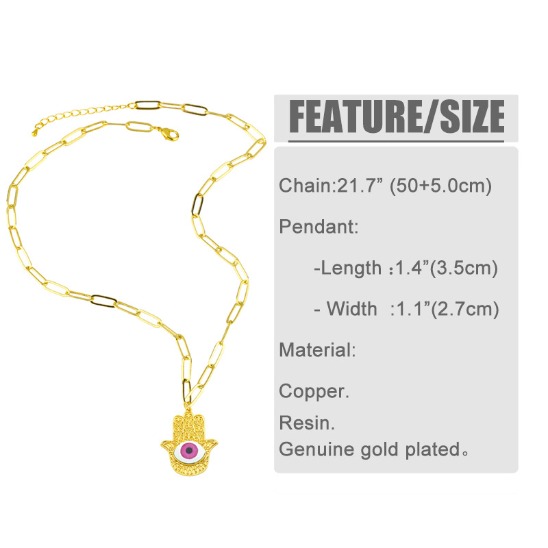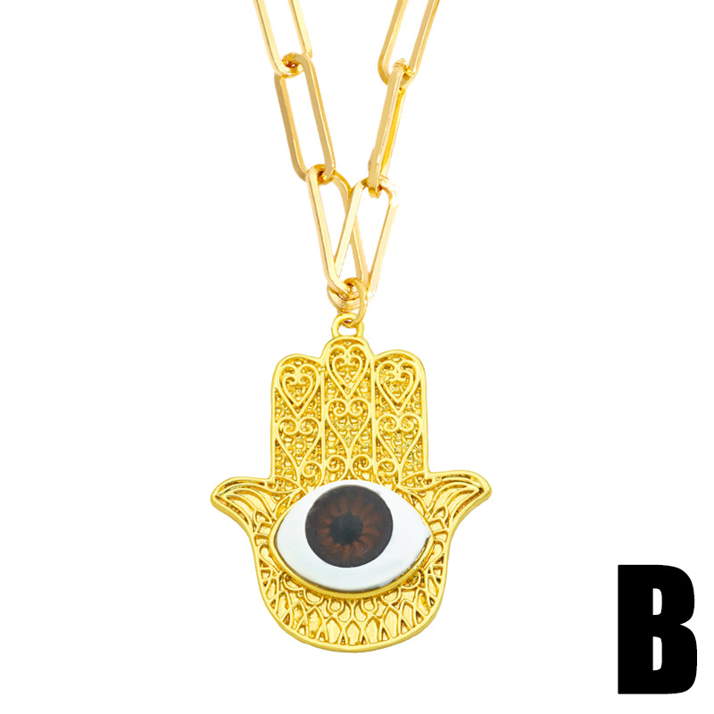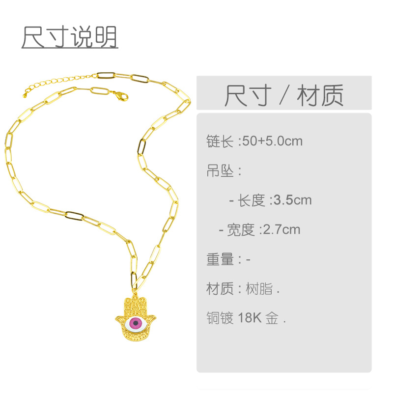 Clearance hot-selling jewelry copper plated 18K gold palm devil eye pendant creative inlaid necklace female nky85