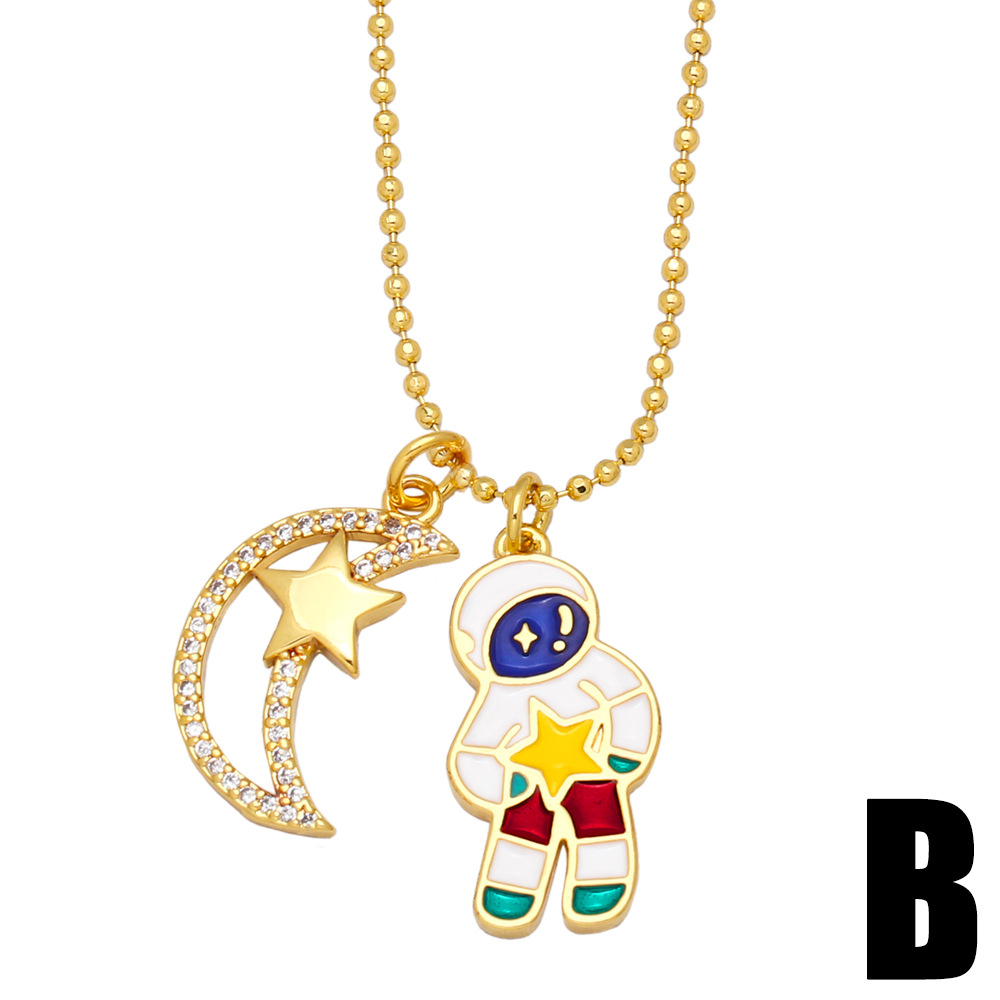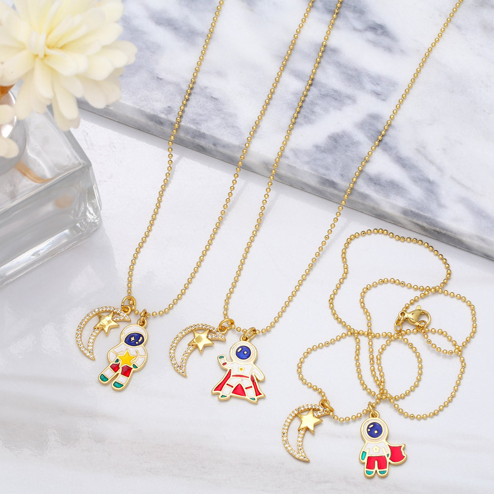 Clearance hot selling jewelry European and American fashion star moon astronaut necklace female astronaut pendant nka064