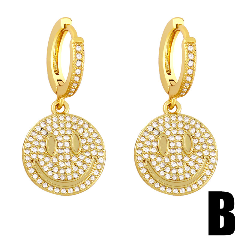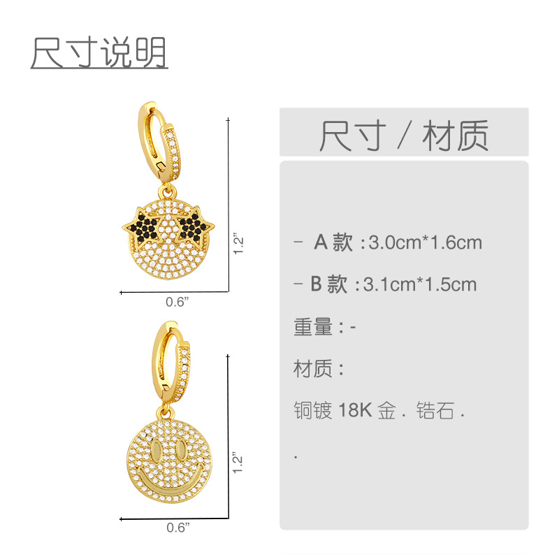 Clearance INS full diamond star eyes smiley face earrings earrings personality creative hip hop rap trend earrings erx12