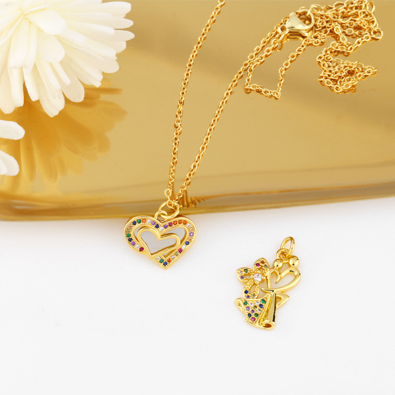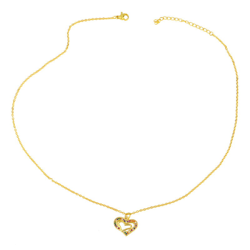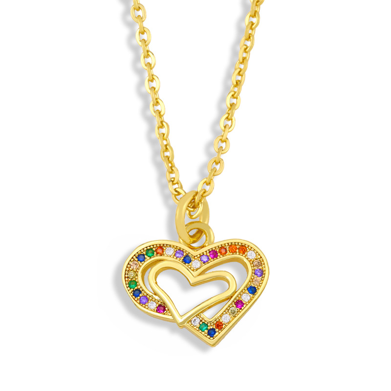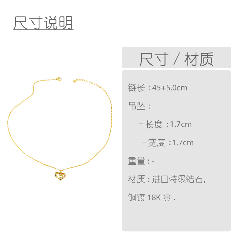 Clearance Japanese and Korean celebrity titanium steel necklace female style inlaid with colored zircon love pendant clavicle chain nku10