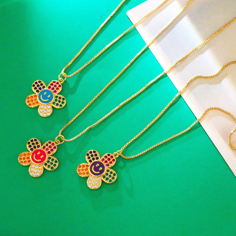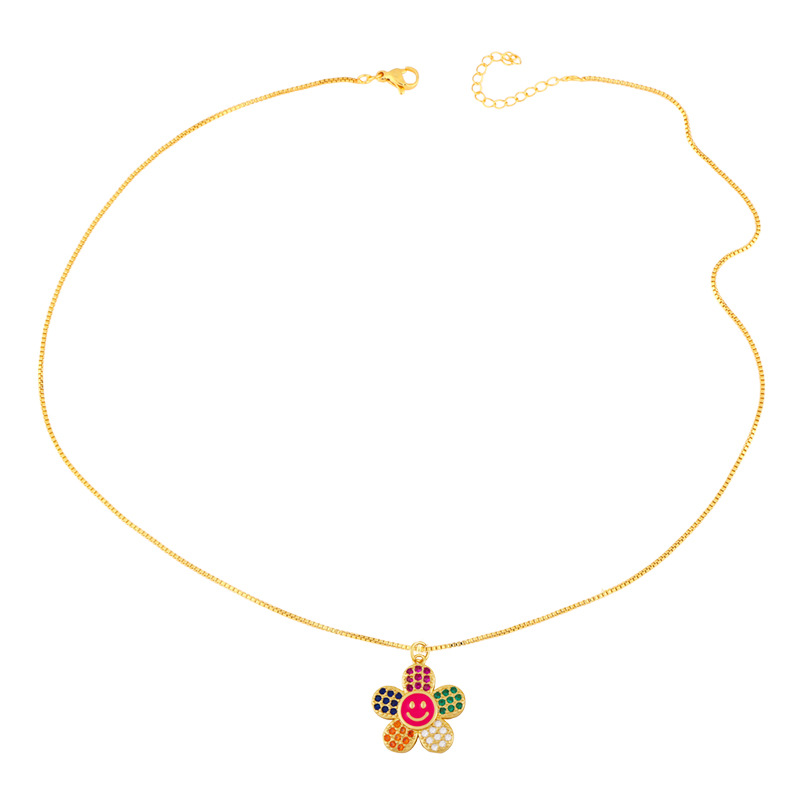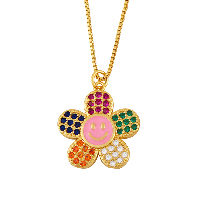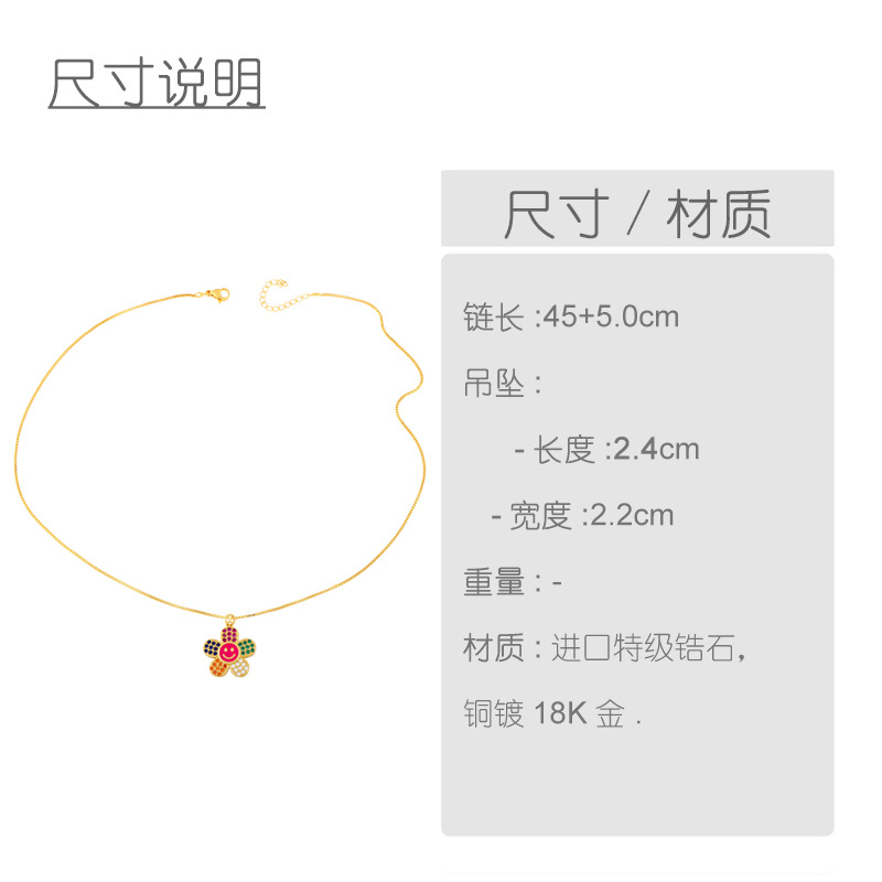 Clearance jewelry colored zircon flower necklace personality smiley expression clavicle chain creative necklace nkw84