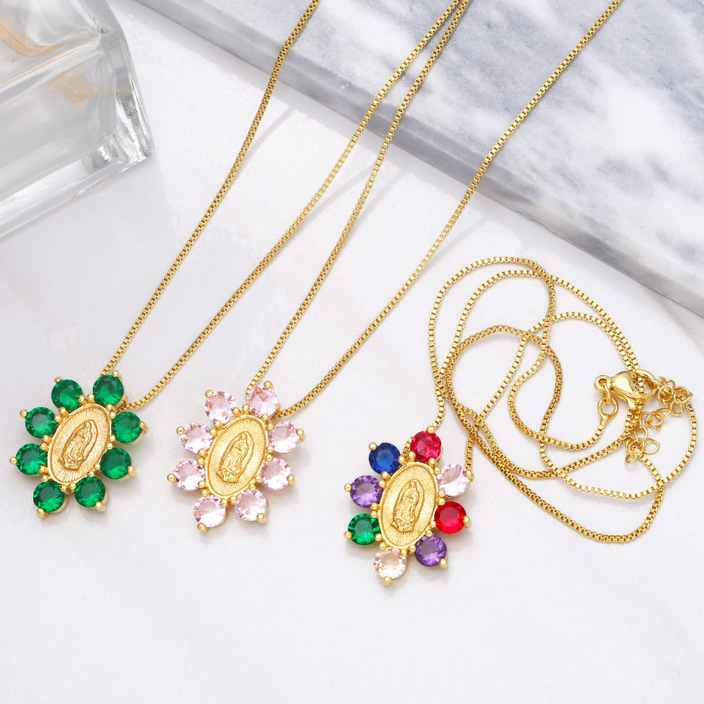 Clearance jewelry colored zircon Virgin Mary necklace niche design necklace nkb213